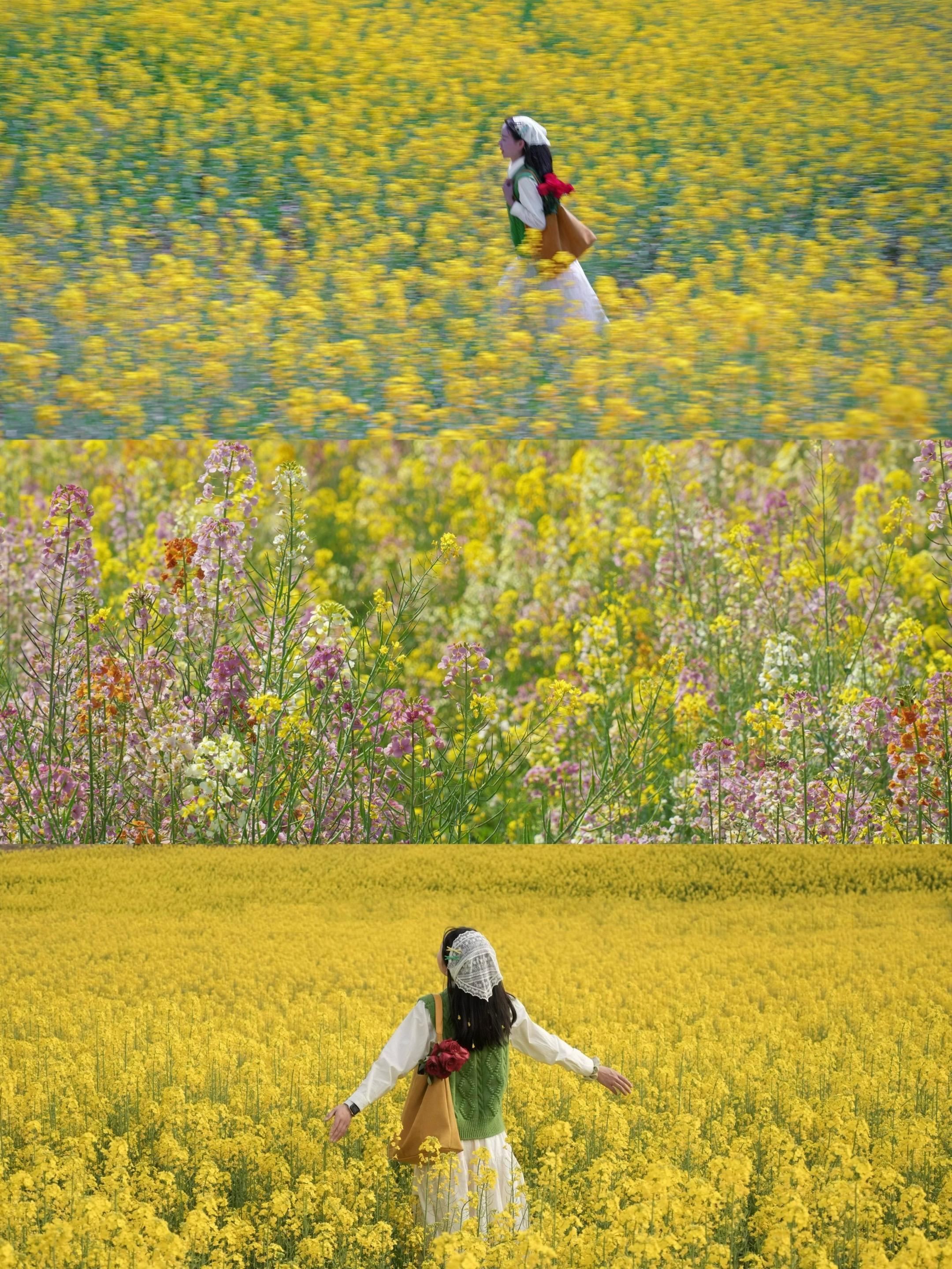 成都七彩油菜花,仿佛闯入莫奈的花园。拍摄时间:2026.3.4 在成都误入现实版油画世界~ 原来童话里的「七彩油菜花」真的存在 . 告别了满目的金黄💐 这片花田就像是打翻了调色盘 粉白、橘黄、藕紫、绛红… 汇聚成了一片流动的彩虹色 真的好像闯进了莫奈的油画里 . 我还发现了“花田迷宫”🌼 没想到油菜花还有这般奇妙的玩法 和好朋友一起钻进金黄色的迷宫里 在花墙间追逐,在岔路口嬉笑 像闯入了一场无声的春天电影 . 📍地址:新津农博园油菜花 ⏰花期:3月初-4月中旬