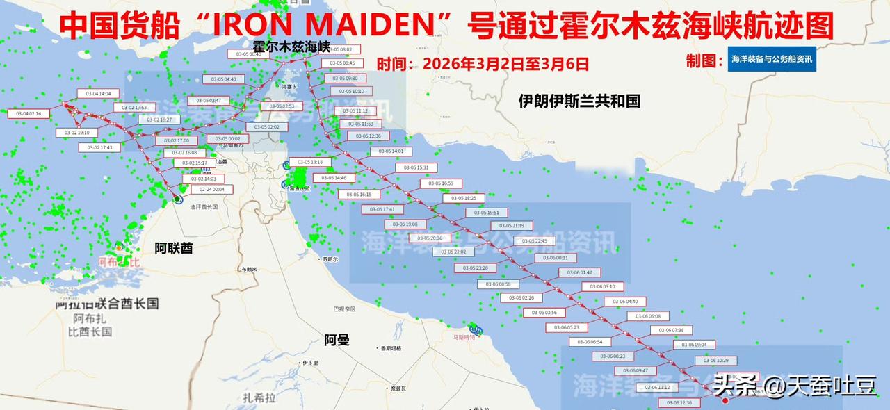 伊朗称仅允许中国船只通过霍尔木兹。在中东局势持续紧张,美国、以色列对伊朗发动猛烈袭击和侵略行动、地区冲突不断升级的背景下,全球多数商船对霍尔木兹海峡望而却步,而中国船只疑似获得通行许可。 据公开的AIS航迹显示(图1),3月2日离开迪拜、已在波斯湾漂航多日的散货船“铁娘子”号(Iron Maiden)于3月5日凌晨将船舶识别信号从“待指示”调整为“中国所有”(CHINA OWNER),在3月5日凌晨至5日上午,以12-13节的航速沿阿曼海岸线顺利通过海峡航道。截至3月6日中午,该船已经顺利进入阿拉伯海。(图2)为该船2024年在美国西雅图卸货时的资料图。美国能赢得对伊朗的战争吗 印度真实军事实力如何?