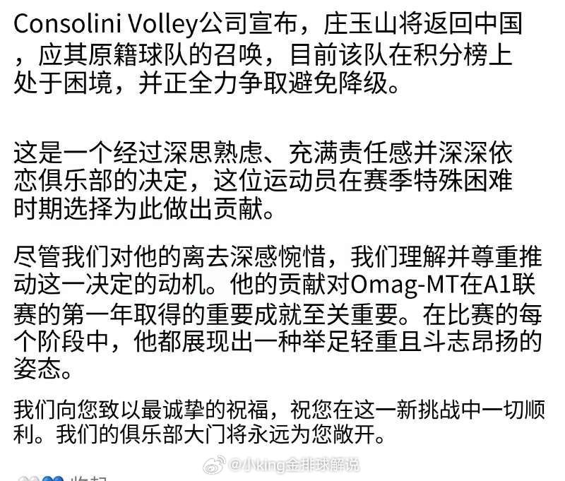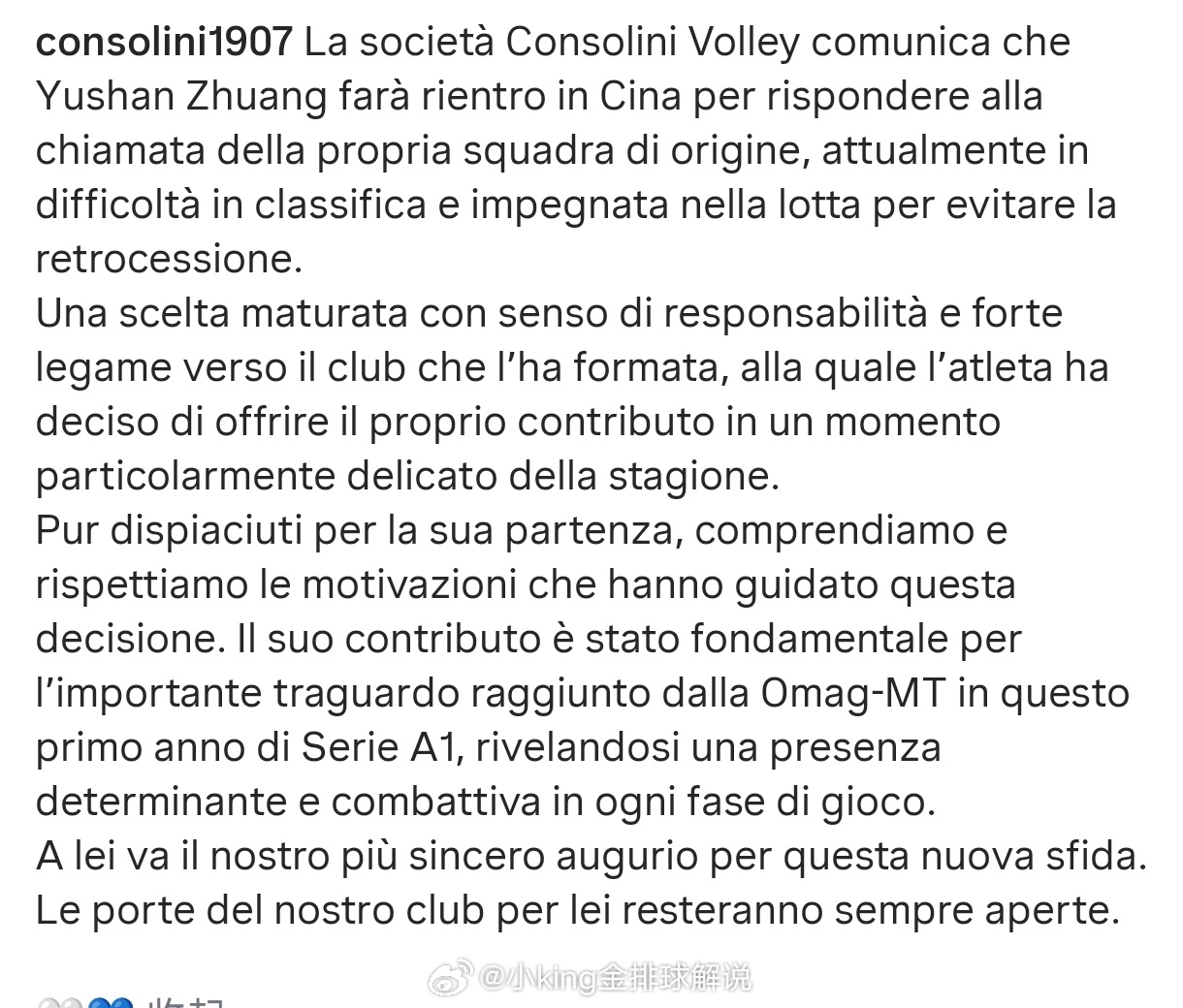 庄宇珊即将回国,为福建队后续比赛效力。圣乔万尼不错中国女排庄宇珊