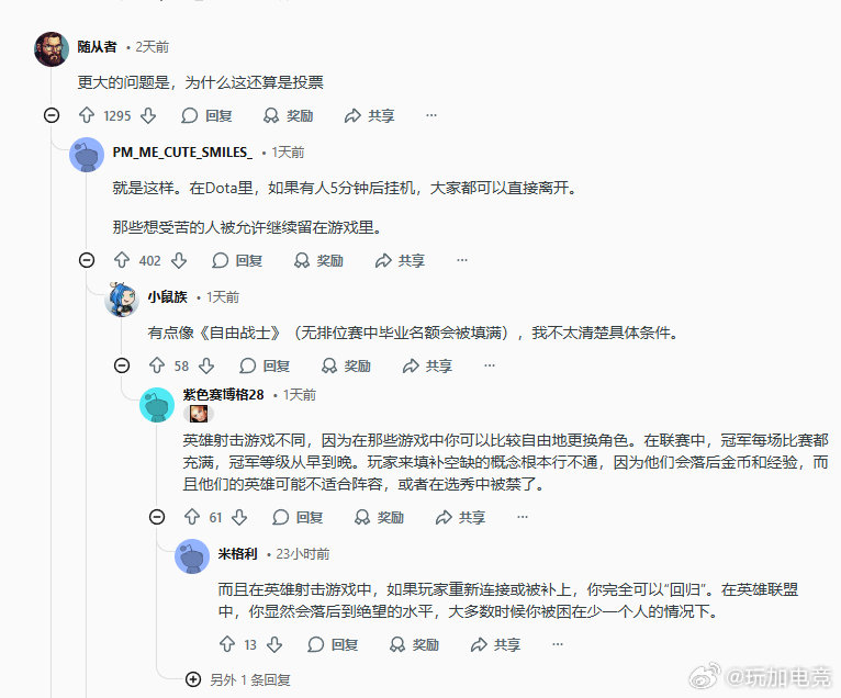 1)更大的问题是,为什么这还算是投票——就是这样。在Dota里,如果有人5分钟后挂机,大家都可以直接离开。那些想受苦的人被允许继续留在游戏里。