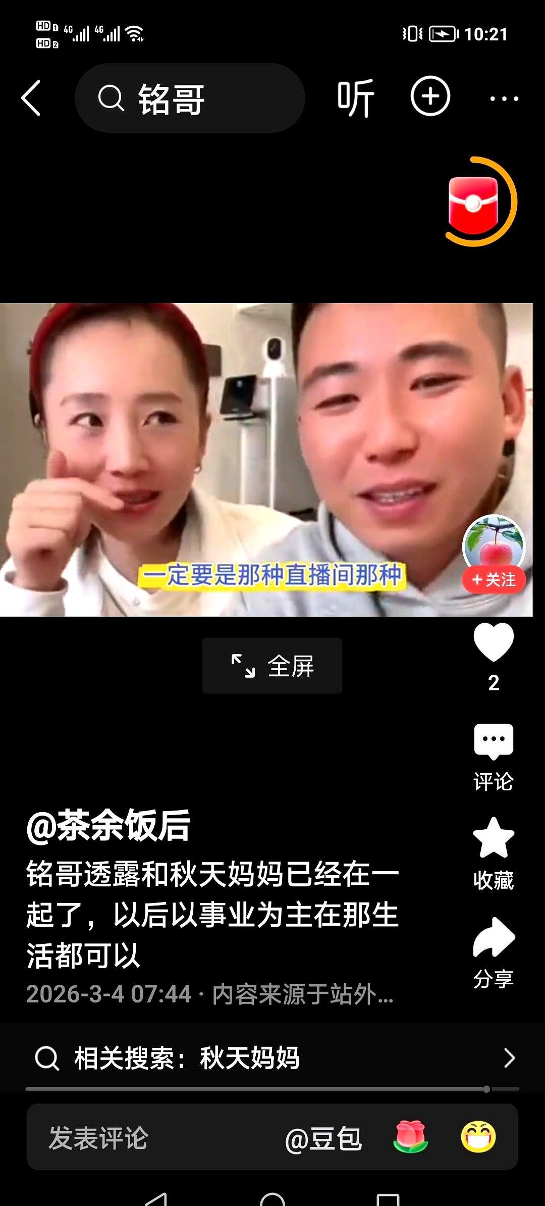全网都在等破镜重圆,这对网红前任却把感情的算盘打得极其清醒。 秋天爸爸刚在镜头前宣布,与绯闻搭档圆圆退回兄妹位置,专心搞事业。 转头在秋天妈妈的直播间,新欢铭哥就坦然承认两人已经同居,理由是“为了工作方便”。 没有狗血互撕。前夫守着搭档卖货,前妻拉着新男友在镜头前说笑,连长辈都默契认可。 看客们还在为单亲孩子操心,猜测新欢急于官宣是怕旧情复燃。 其实在名利场里,感情早就成了事业的基石。不合适就做回赚钱合伙人,看对眼就打包成新IP。 把真实的聚散离合全盘托出换取流量,这究竟是成年人的顶级清醒,还是另一种身不由己?
