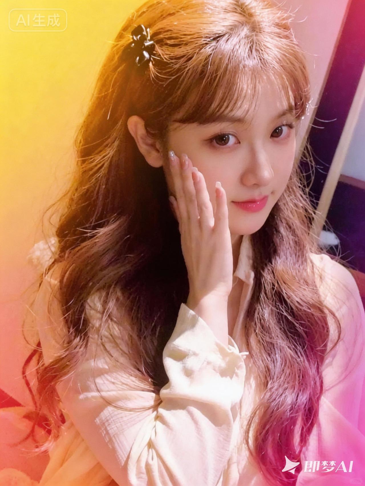 漂亮女孩,动作随机,戴着色的贝雷帽,穿着红黑色露肩毛衣,长波浪卷发