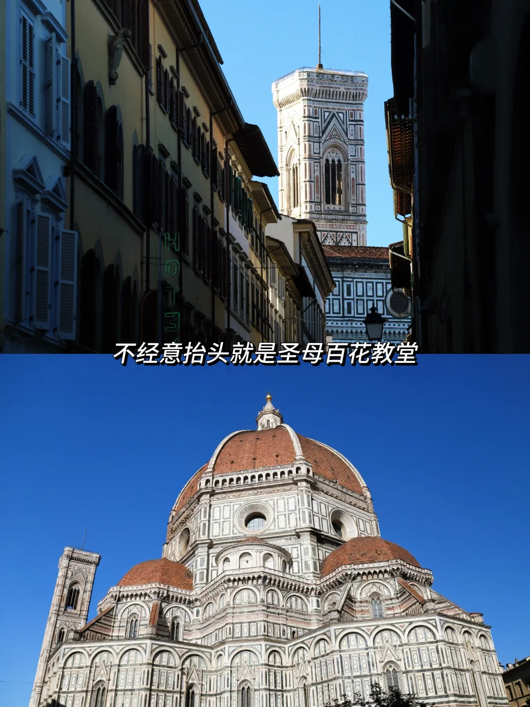佛罗伦萨有三个主要登顶的地方:圣母百花穹顶、乔托钟楼、旧宫钟楼。都需提前预约🕰️。旧宫钟楼是看教堂最好的地方,如果想登一个可以预约这个👆🏻个人觉得意大利登顶选一个梵蒂冈圣彼得教堂即可,不然会有点腻