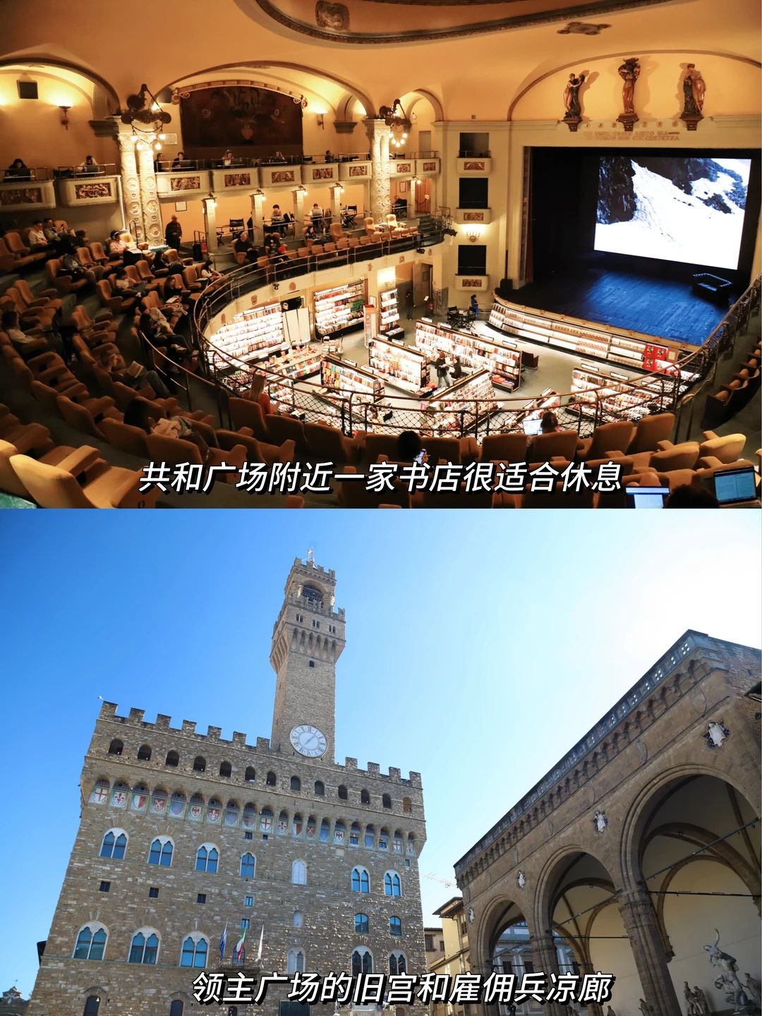 一座旋转木马和凯旋门,附近有家Giunti Odeon📖📖📖百年影院白天化身书店,二楼适合休息