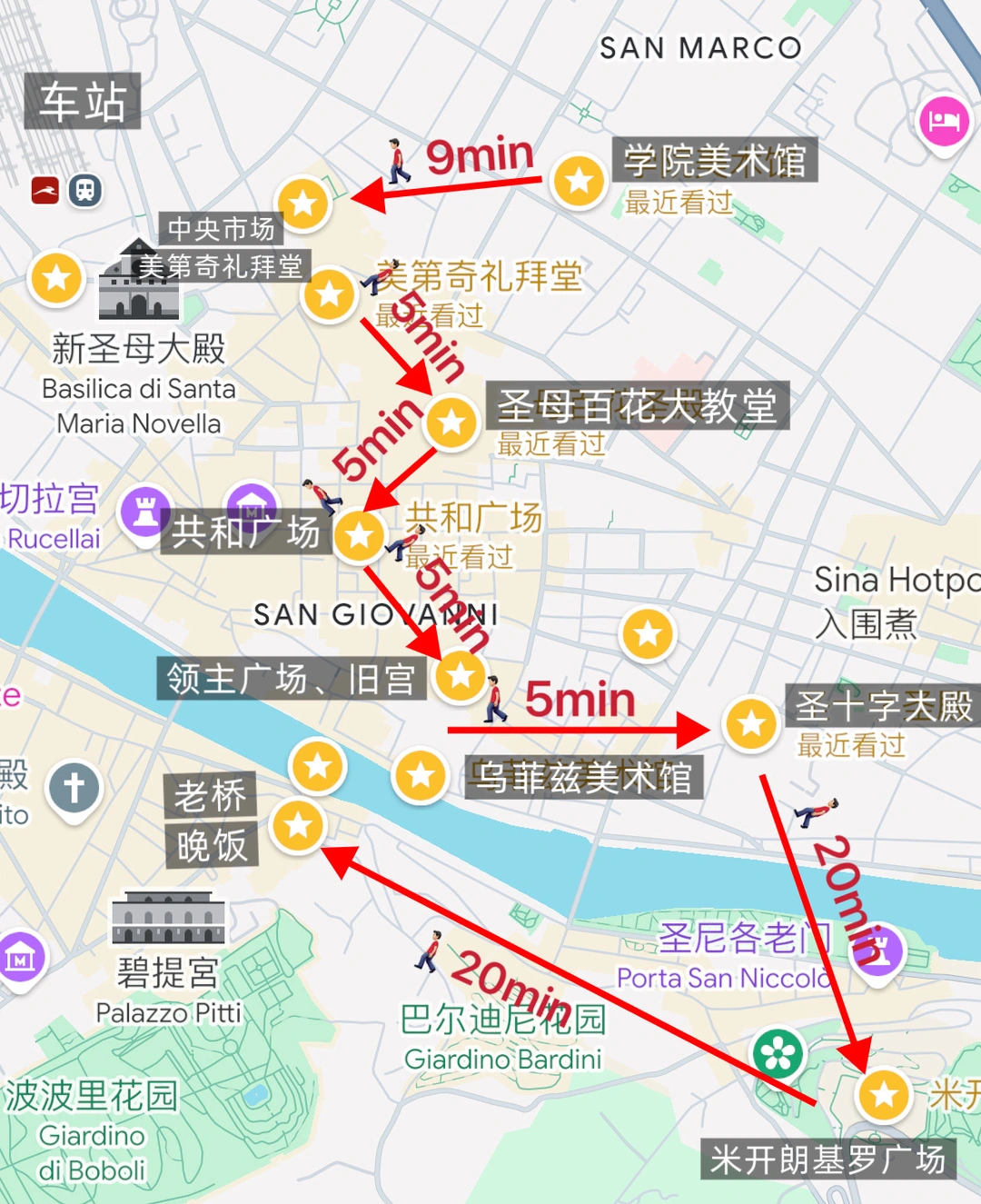佛罗伦萨很小,一天就能逛完🚶🏻♂️🚶🏻♂️🚶🏻♂️。由于怕逛宫殿和登教堂会腻,所以我放弃了一些,但找了几家有意思的店串联起我的逛吃路线