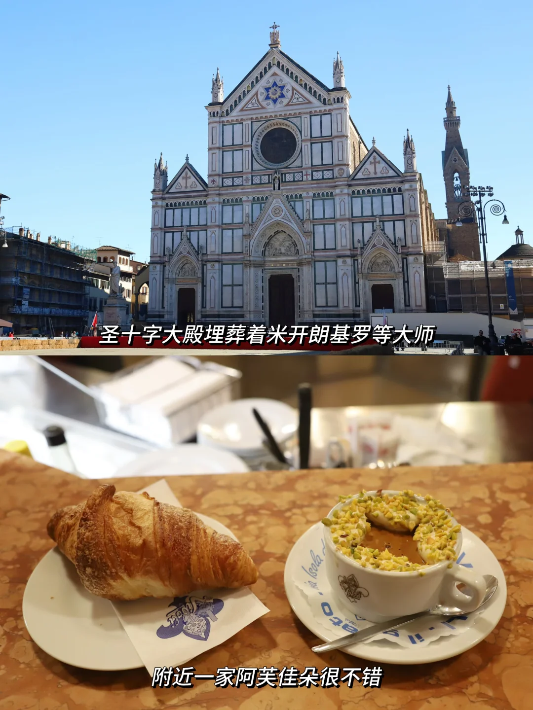 许多名人安葬于此,像米开朗琪多、但丁、伽利略。附近有家挺出名的阿芙佳朵☕️Vovoli