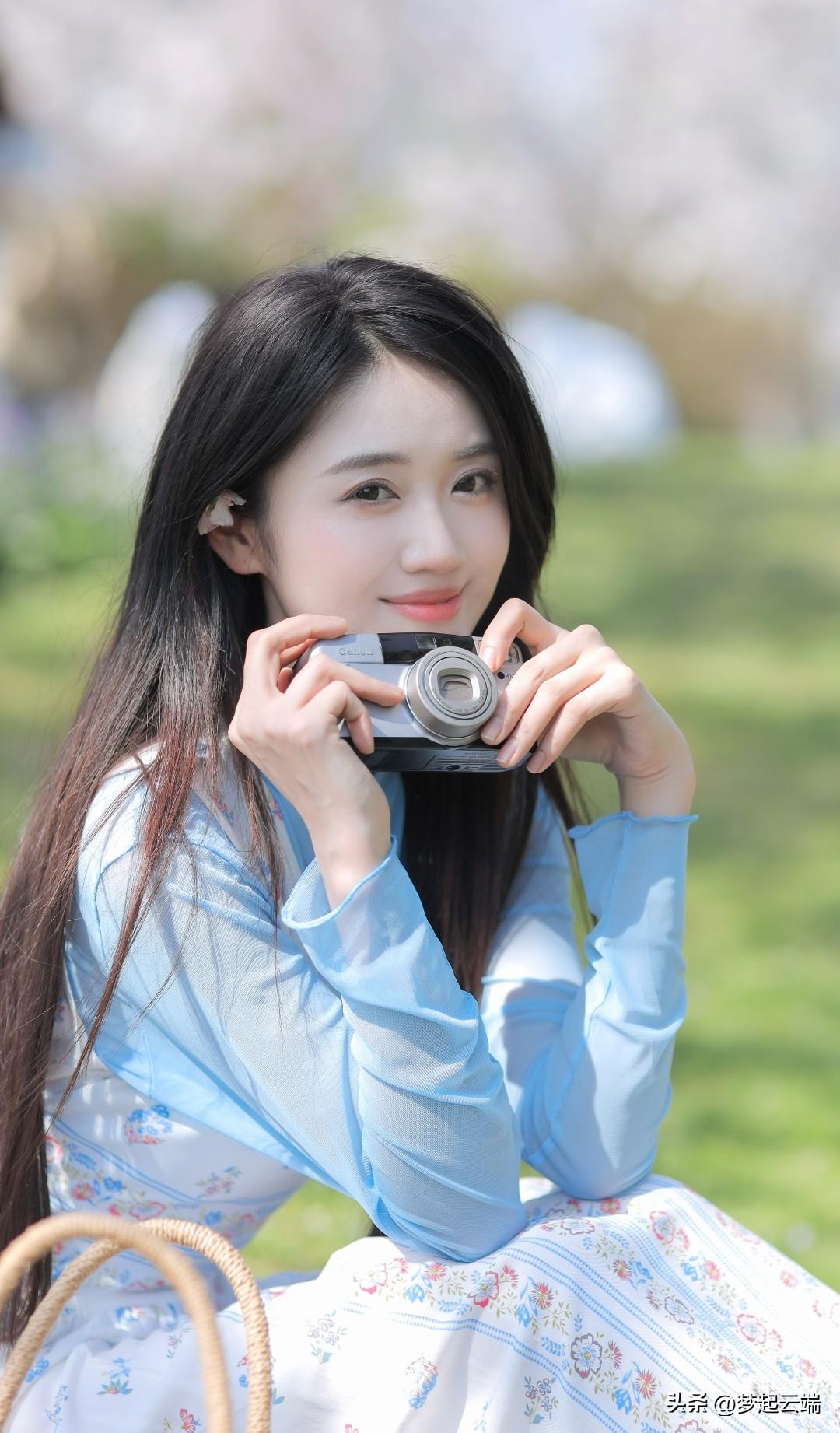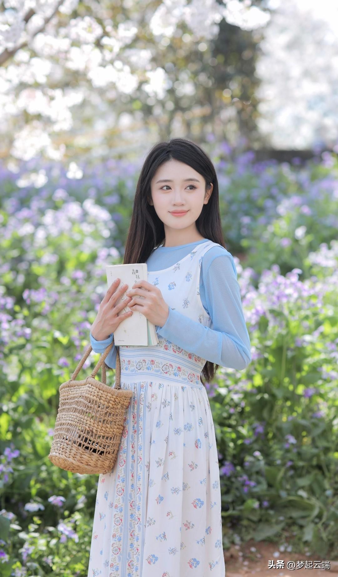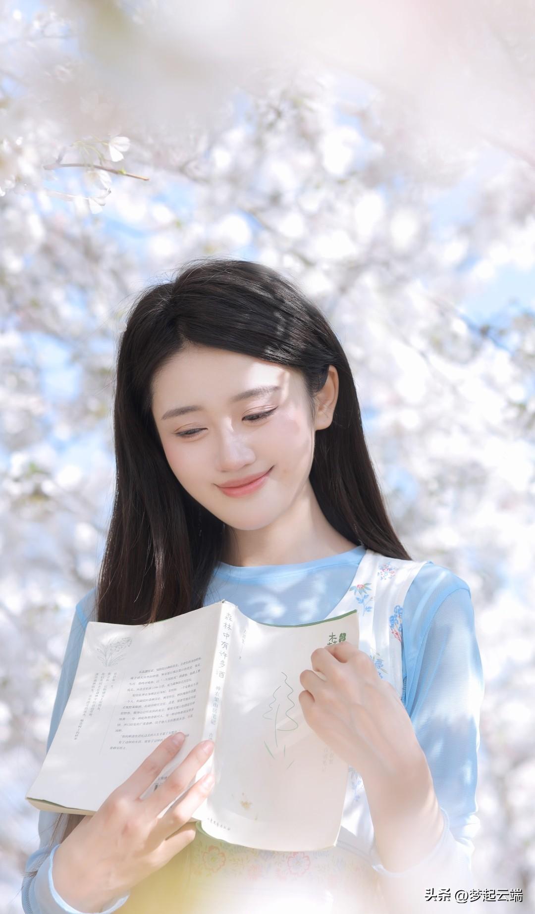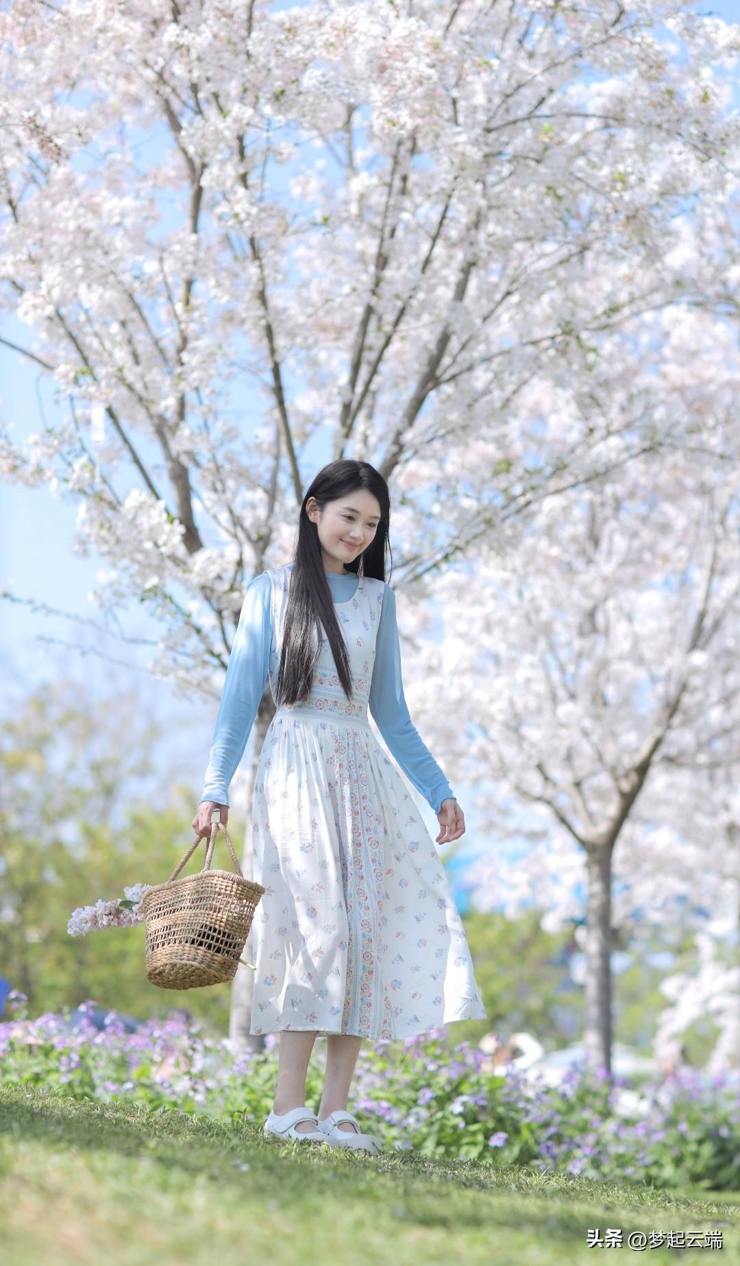 樱花树下,甜美少女,粉色花裙,春日浪漫。