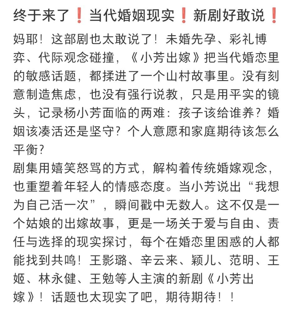 王影璐 颖儿 辛云来 王勉的《小芳出嫁》好现实的题材