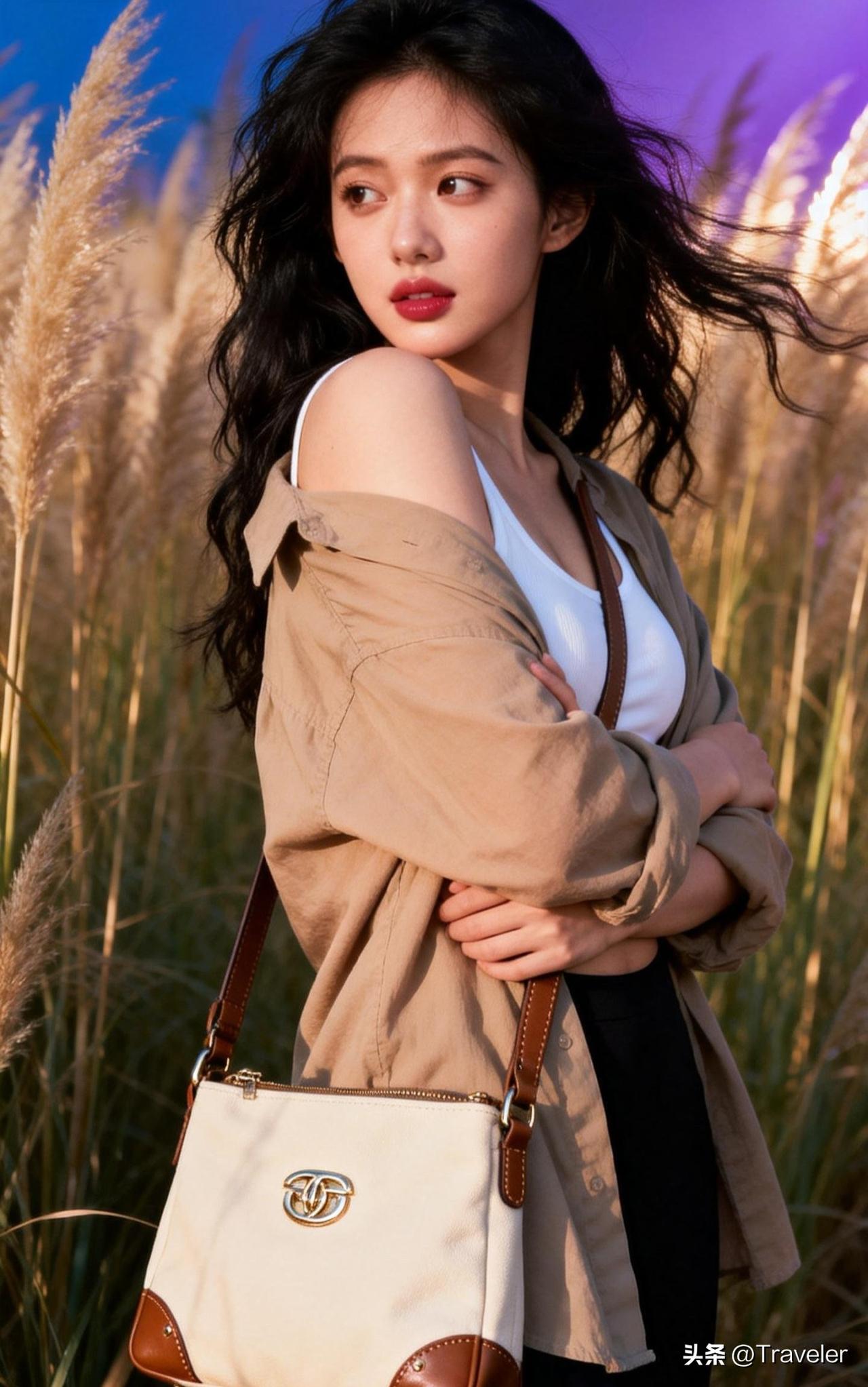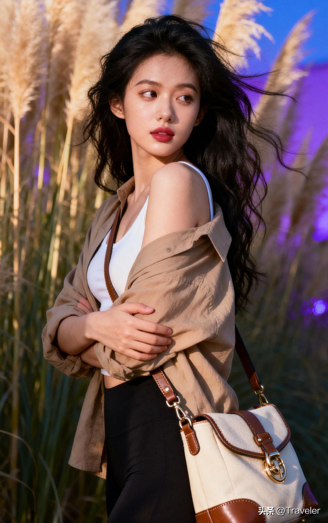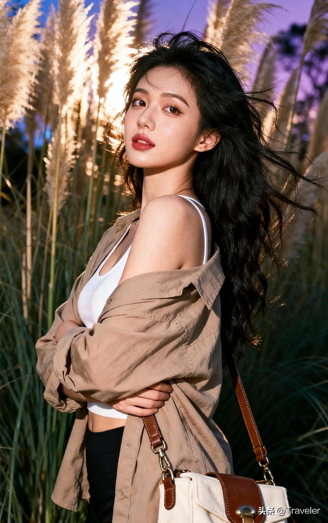 黑发少女与动漫背景的完美融合,复古与现代的碰撞!
