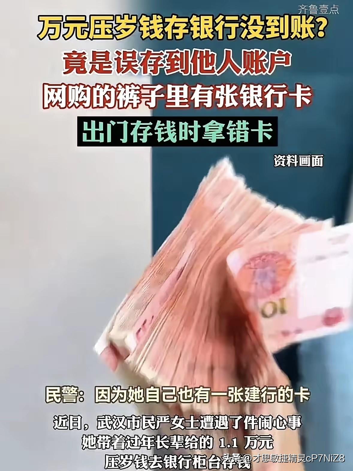 武汉,一女子网购了一条裤子,却发现兜里有一张陌生的银行卡,她随手放到边上,等过年期间,自己收了有1.1万的压岁钱,想要将钱存到银行卡里,她随手拿了一张卡,可存完却发现钱没到账,一查她竟然把钱存到了一张陌生的卡里,这可把她急坏了,急忙报警!网友:二手裤子也敢穿? 严女士在过年的时候,长辈给了她1.1万元压岁钱,她想着这笔钱放在家里也没用,就打算去银行存起来。 她那天顺路,就去了银行柜台,把钱存好,办好手续后就回了家。 直到大年初三晚上,严女士想看看存款余额,给孩子准备开学红包。她点开手机银行,翻来覆去都没找到1.1万元的入账记录,心里瞬间咯噔一下。 她慌忙翻出抽屉里的存款单据,借着客厅的暖光灯一看,卡号前几位就和自己的常用卡对不上。那一刻,她的脑子一片空白,连手里的单据都捏出了褶皱。 那张陌生的银行卡,正是从网购的裤子兜里翻出来的。她当时只觉得是卖家的疏忽,随手扔在书桌一角,竟成了如今的“大麻烦”。 严女士连夜拨打了报警电话,民警赶到时,她还在不停翻找裤子的订单信息,声音里带着抑制不住的哽咽。1.1万,对普通家庭来说,不是一笔小数目。 民警一边安抚她的情绪,一边联系了存款的银行网点。好在柜台存款留了完整的身份信息和单据,银行很快调出了收款账户的户主信息。 户主姓王,是湖北襄阳的一位退休工人。民警第一时间拨去电话,却被王大爷当成了电信诈骗,直接挂了两次。 直到民警发送了工作证件照片,又让银行工作人员帮忙佐证,王大爷才终于相信,自己的旧卡里突然多了一万多块钱。 王大爷这才想起,那张卡是他的工资卡。年前女儿给他网购了一条裤子,他试穿时顺手把卡塞进兜里,嫌尺码小就退了货,竟把卡忘得一干二净。 “这钱不是我的,一分都不能留!”王大爷挂了电话,第二天一早就坐高铁从襄阳赶到了武汉。 见面时,王大爷手里还拎着两盒襄阳牛肉面,笑着对严女士说:“姑娘,别着急,钱我一分没动,这就转给你。” 严女士又愧疚又感动,当场给王大爷转了两百块路费,还买了一大袋武汉特产。王大爷拗不过,只收下了特产,路费硬是退了回去。 网友那句“二手裤子也敢穿”,其实有点以偏概全。如今二手经济愈发火热,不少人选择二手商品,图的是实惠和环保。 真正的问题,出在二手商品退换货的细节上。不管是个人卖家还是平台,若能多一道清理检查的工序,或许就能避免这样的乌龙。 更难得的是,这场乌龙里没有猜忌和贪念。严女士的坦诚报警,王大爷的拾金不昧,让一桩麻烦事,变成了温暖的相遇。 生活里的意外总在所难免,但善意和诚信,永远是化解矛盾的最好良药。 各位读者你们怎么看?欢迎在评论区讨论。