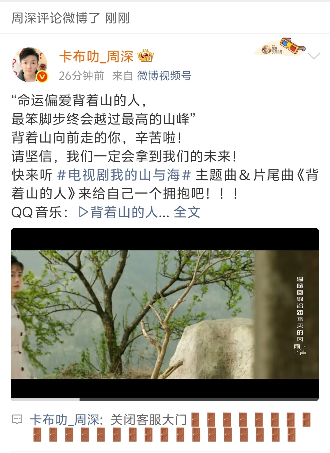 周深📣3.7深深发博📣深深今日的客服大门已关闭,米子们记得来找深深