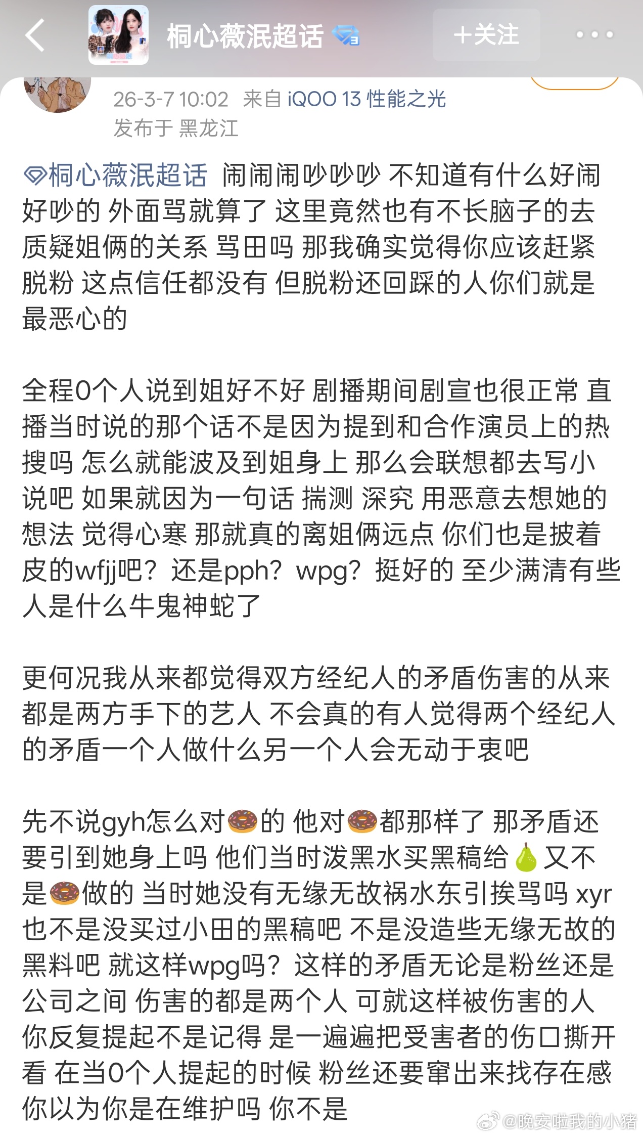 桐心薇泯cpf脱粉回踩田曦薇,好像是昨日剧宣直播cue到了经纪人。。。
