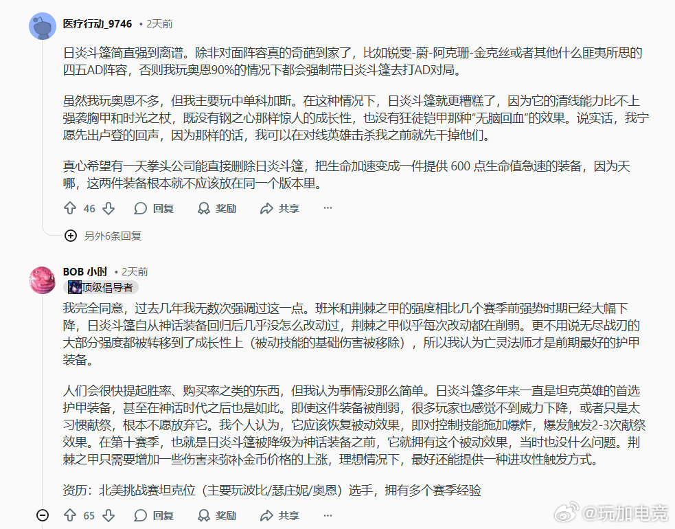 大家怎看待现版本下的日炎和反甲这两件装备?