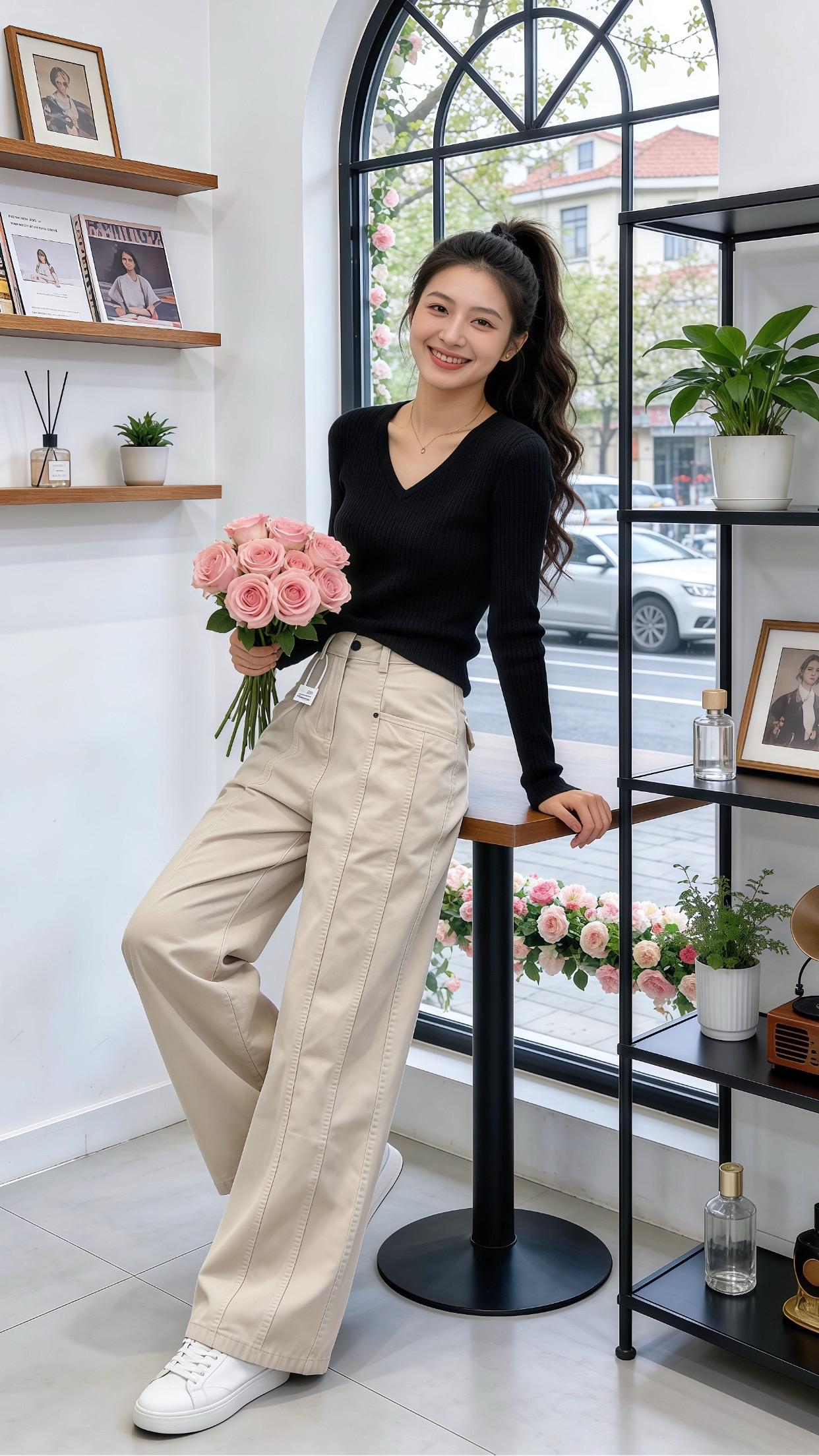 刘浩存用自己证明:修身裤比宽松裤好看太多。