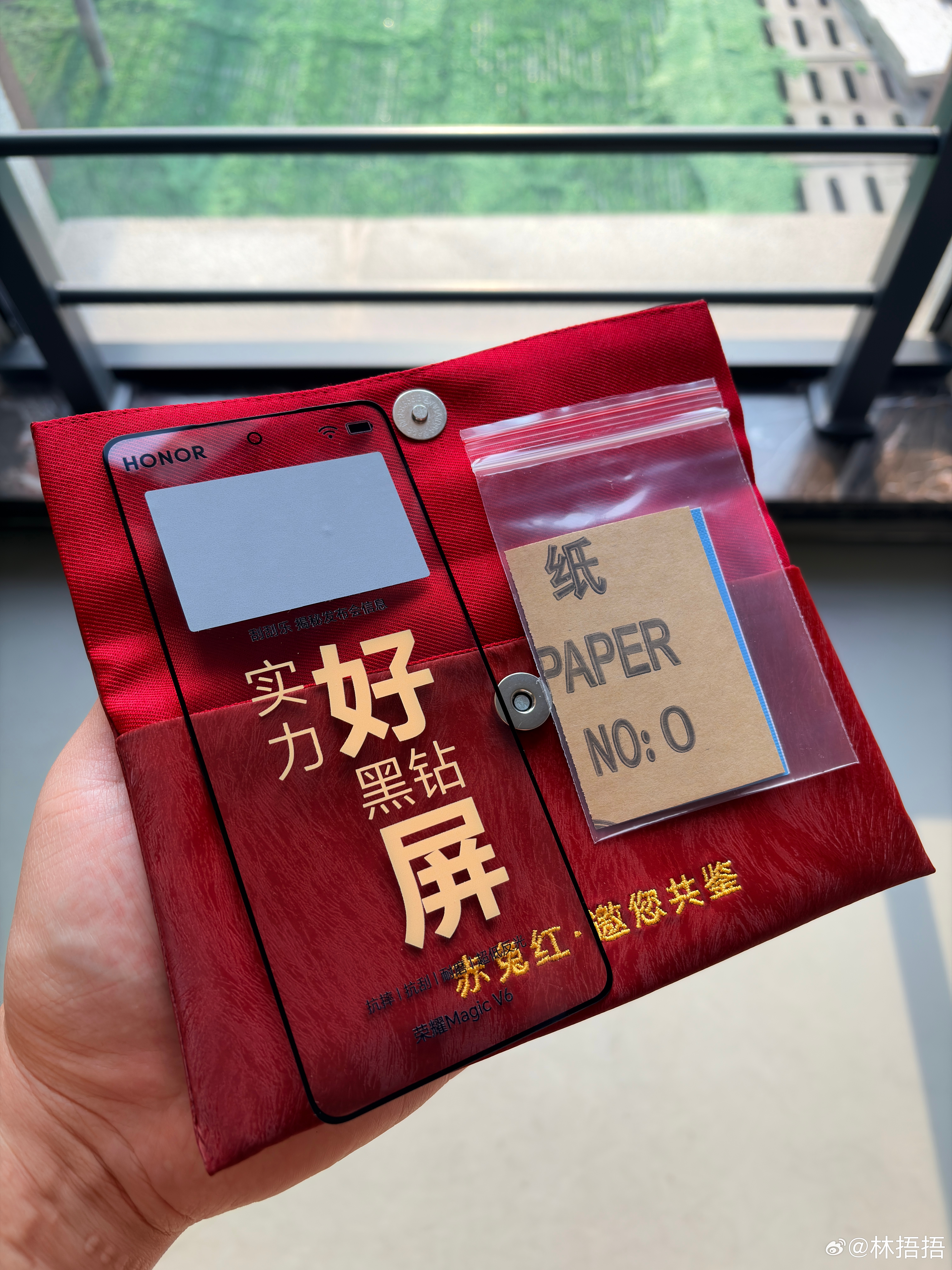 荣耀Magic V6的邀请函有点意思,红包外皮的材质应该和后盖的手感一样(我也没摸到机器,真的不知道),邀请函是一张外屏玻璃,同时配了一张砂纸,我同时打磨图3的画圈区域,涂层区已经磨掉磨花了,屏幕区域还是光洁如新(不建议真机这样尝试)。期待发布会折叠屏最好的屏幕长什么样