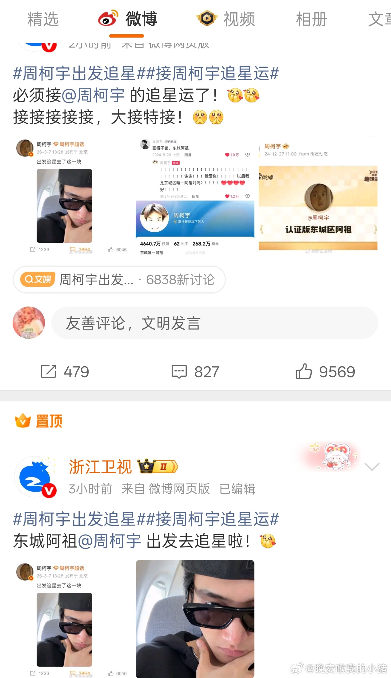 浙江卫视连发四条周柯宇,又是置顶又是背景,蓝台碰上也不高冷了