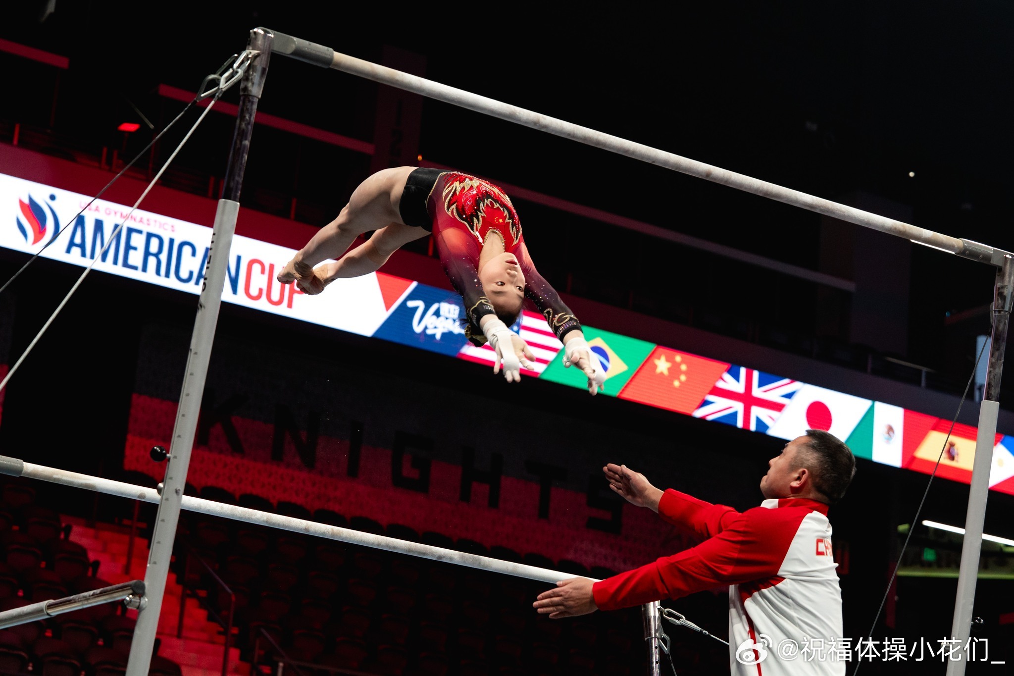 美国杯 美国杯赛台训练结束,正式比赛将于北京时间明天上午10点开始。中国队首轮出场项目为柯沁沁 自由操、李鸿颜 自由操、张清颖 高低杠、张杨煜 双杠。本次美国杯为混合团体赛,每队男女选手各2-3人;男子比自由操、双杠、单杠三项,女子比自由操、平衡木、高低杠三项,每项2人上场,都计入有效分。比赛分为三轮,每队每轮上场2男2女,但本轮上场的两位选手的比赛项目不能相同(男女自由操视为不同的项目);逐轮淘汰(第一轮8进6,第二轮6进4,第三轮决出奖牌),每轮得分清零。
