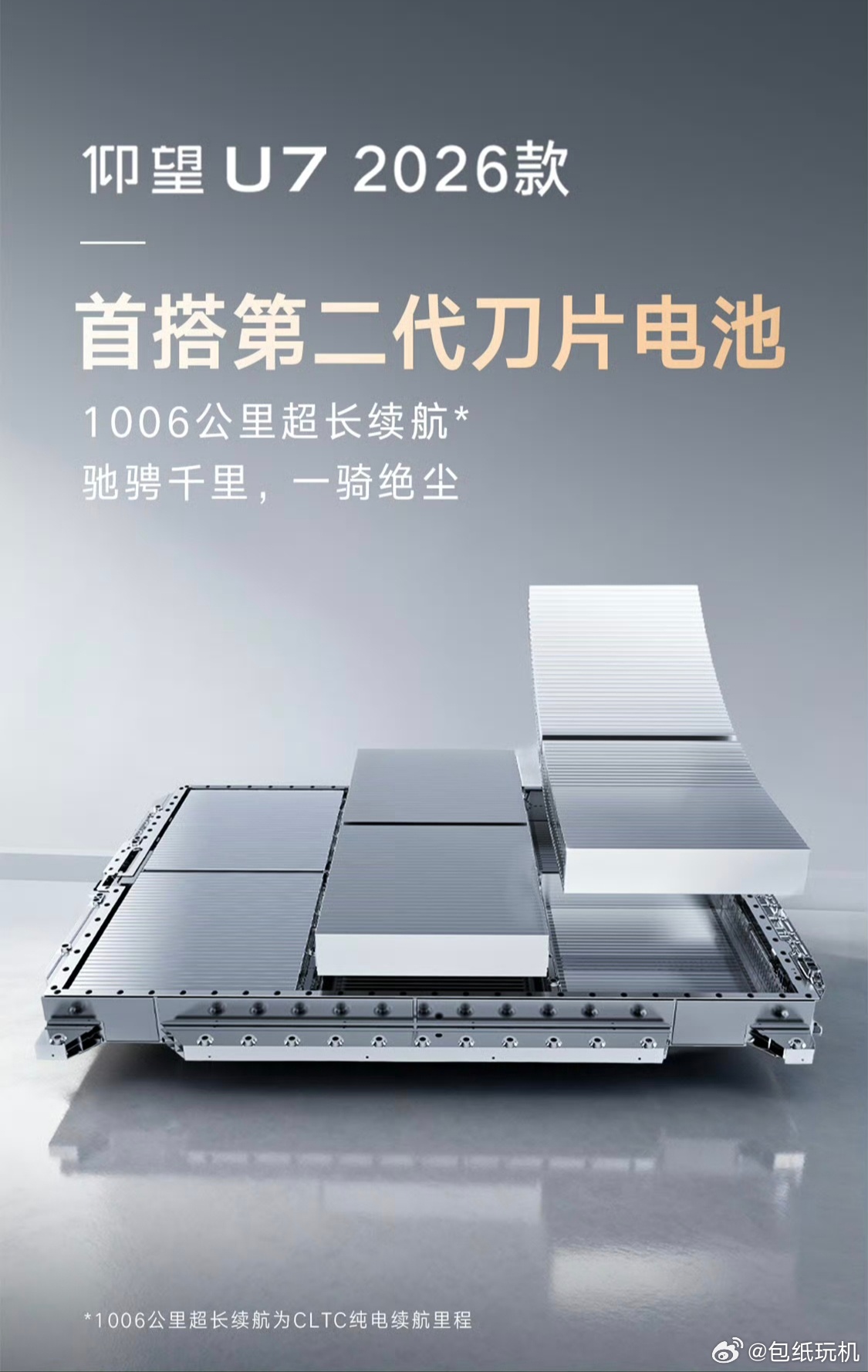 新款仰望U7首搭第二代刀片电池新能源迈入纯电续航千公里时代了,2026款仰望U7首发搭载比亚迪第二代刀片电池,凭借四电机高性能和超1006公里的纯电续航,一举打破“性能、续航、快充”无法兼顾的魔咒。