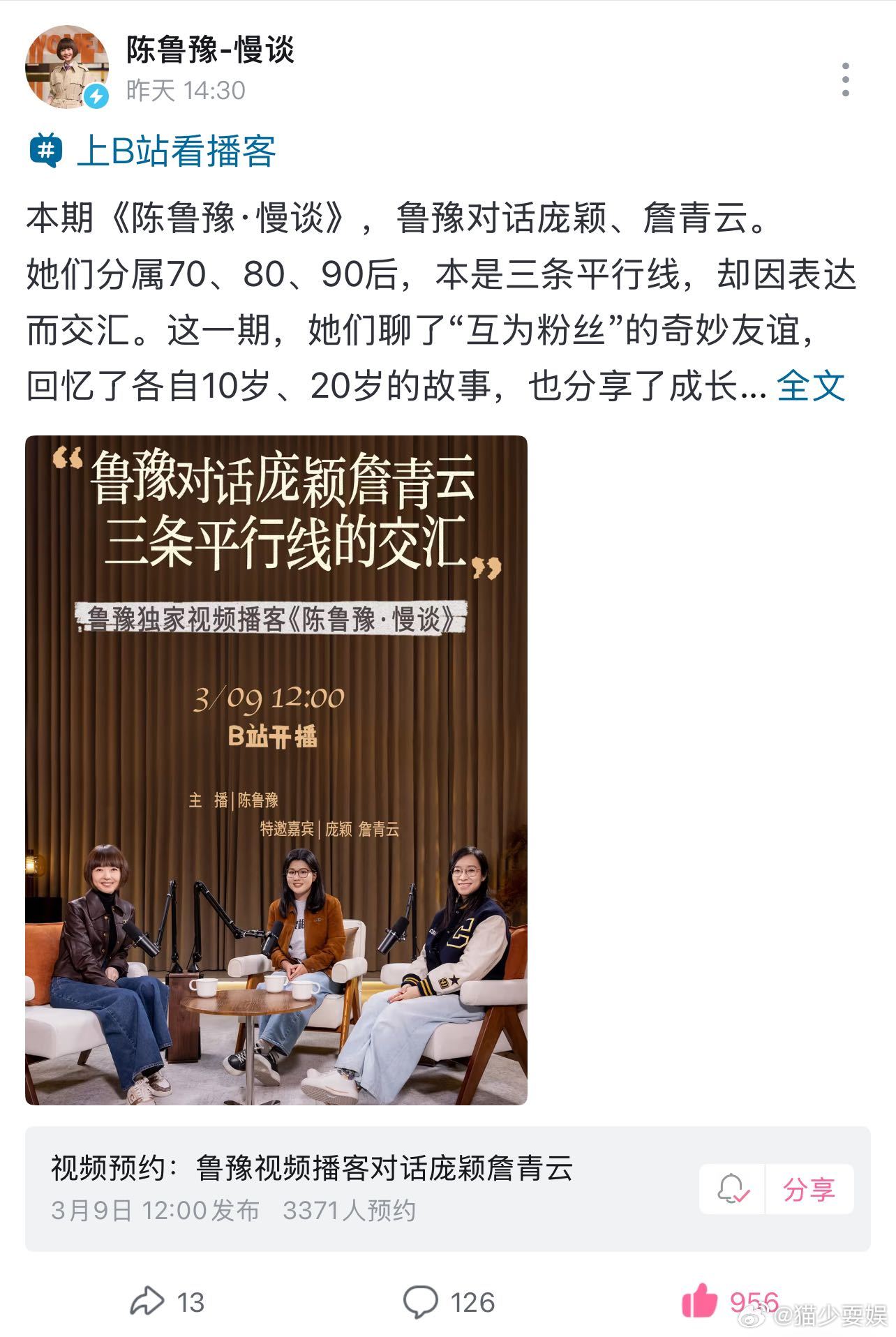 鲁豫吃了多少盐才能讲出这些话 哇塞!《慢谈》直接破百万啦,这热度真的实至名归!内容有深度、访谈超走心,谁看了不爱上!预告下一期是詹庞,惊喜感直接拉满,已经迫不及待坐等开播!