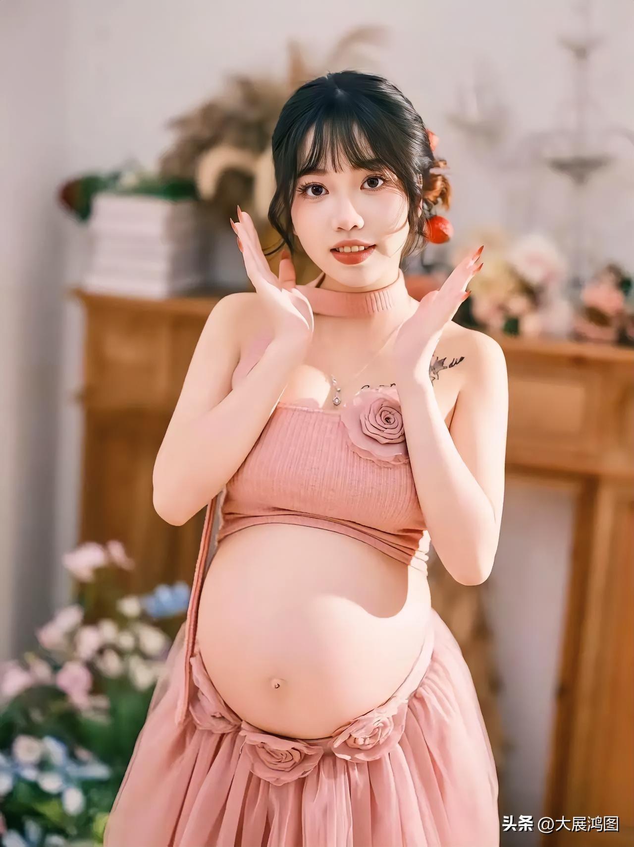 甜美孕味照,粉色连衣裙,花环发饰,温馨氛围,幸福满满!