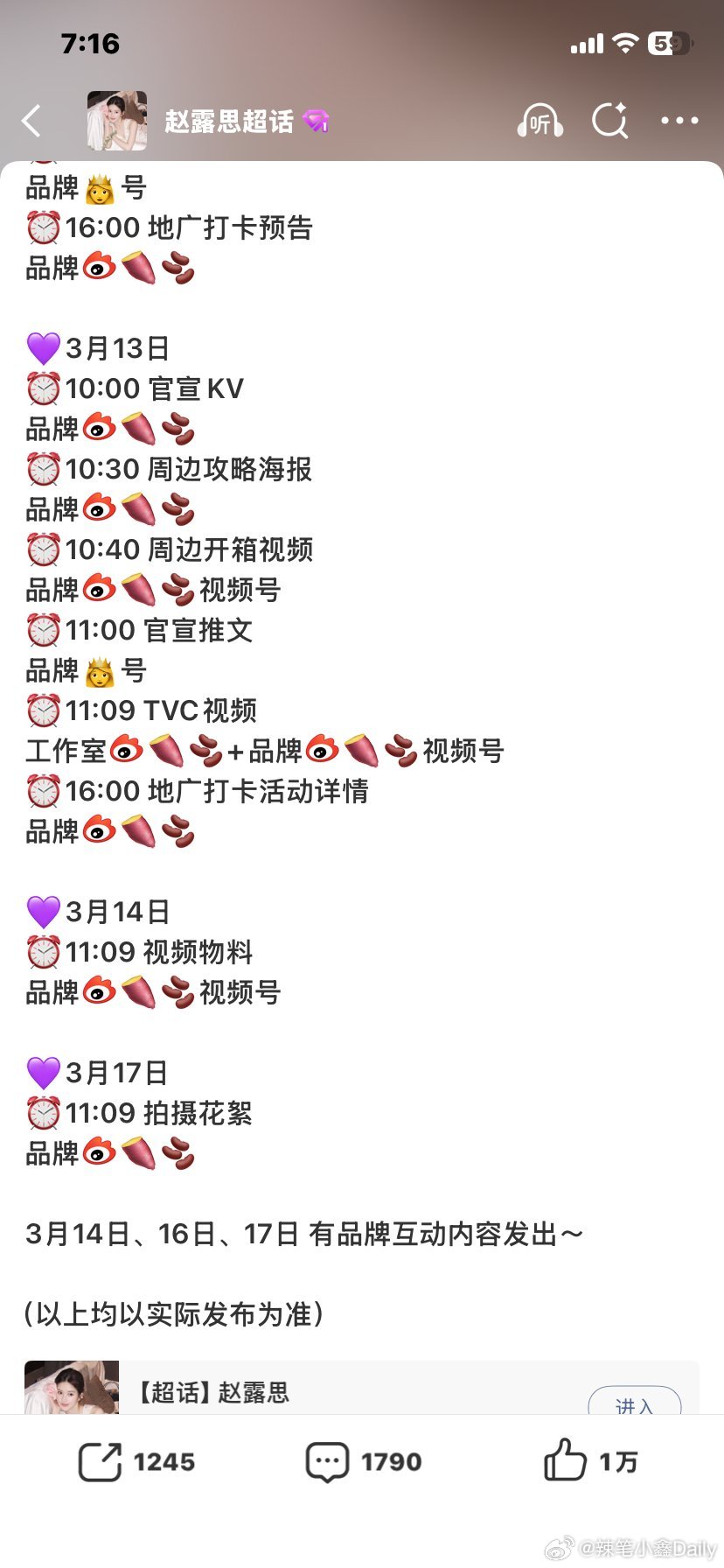 赵露思新商务官宣节奏,10号和11号全平台预热海报,3月12号预热视频,13号正式官宣➕地广投放,第一次看到商务插队官宣,赵露思商业价值太🐮了!