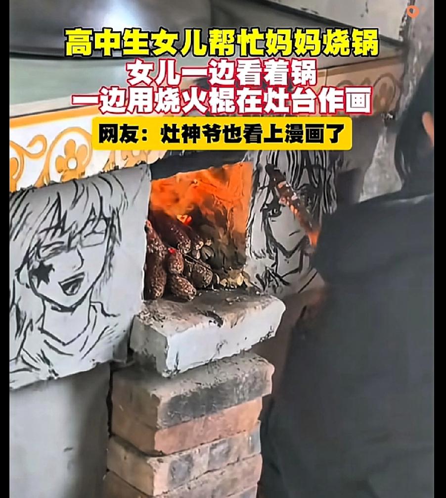 安徽00后太会玩了! 烧火棍当画笔、灶台当画布,几分钟画出栩栩如生的漫画,连人民日报都为这创意点赞! 妈妈喊女儿帮忙烧锅,结果姑娘见烧火棍烧黑了,直接在灶台上挥毫创作。 妈妈哭笑不得之余满是骄傲,这画面真的太治愈了。 其实艺术从不在美术馆里,而在热爱生活的人心里——就像有人用烧火棍画西施、有人在墙面裂缝画仓鼠,生活给的“简陋工具”,也能变成创作的宝藏。 很多人觉得日子枯燥,其实是少了这份“随手创造”的热情。 柴米油盐的琐碎里,只要心怀热爱,灶台能变画板,树枝能当画笔,平凡日常也能开出浪漫的花。 你小时候有没有过这种“就地取材”的创意时刻?评论区分享下你的童年小创作~