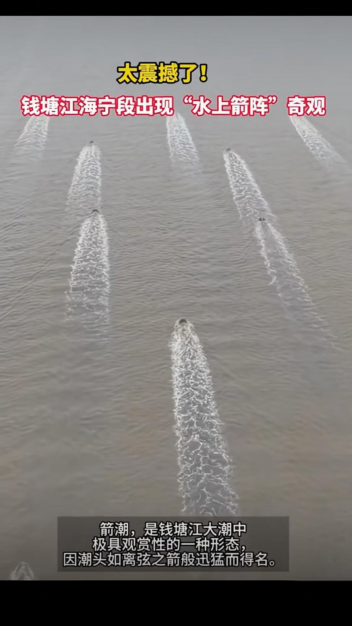 太震撼了! 钱塘江海宁段出现"水上箭阵"奇观 箭潮,是钱塘江大潮中 极具观赏性的一种形态, 因潮头如离弦之箭般迅猛而得名。 远远望去,数十道雪白潮头齐头并进,在宽阔的江面上拉出一道道凌厉的弧线,如同千军万马搭弓上弦,朝着同一个方向疾驰而去,气势直逼云霄。没有丝毫拖泥带水,每一道潮锋都锋利如刃,破开江面的瞬间,轰鸣声震耳欲聋,隔着屏幕都能感受到扑面而来的磅礴力量。 很多人一辈子见过钱塘江大潮,却未必见过这般罕见的箭潮。它不同于一线潮的壮阔,也不同于回头潮的惊险,箭潮胜在快、准、齐,像是大自然精心排布的水上战阵,带着一往无前的锐气,看得人热血沸腾。 这一幕不仅是自然的鬼斧神工,更藏着中国人刻在骨子里的精神图腾。从古至今,钱塘潮奔涌千年,见证着这片土地的坚韧与豪迈,钱王射潮的传说流传至今,讲的正是人定胜天、奋勇向前的底气。 江潮奔涌,是自然的力量,更是奋进的信号。看着这一道道破浪前行的“箭锋”,谁能不心生感慨:人生亦如潮,唯有迎难而上、奋勇争先,才能闯出属于自己的壮阔天地。 见过钱塘箭潮,才懂何为天地壮阔,何为一往无前。这样的奇观,值得每一个人亲眼见证。 你见过钱塘江大潮吗?最震撼的一幕是什么?评论区留下你的感受!钱塘潮有多壮观 钱塘江潮水美景分享