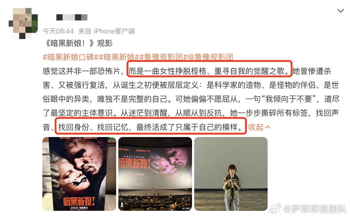 探讨的是死亡却是满满的生命力看完《暗黑新娘!》,表面上是讲述两个死而复生者的故事,但更深层的,是关于第二次 “活着” 所迸发出的滚烫生命力。说实话,这部电影打动我的,从来不是那些猎奇的设定,而是这个外壳之下对人性幽微处的挖掘 —— 尽管它足够大胆、足够有趣,为科学怪人与新娘这对经典角色注入了前所未有的鲜活与惊喜。真正戳中我的,是它把 “怪物的孤独”“重新活过”“找到自己” 拍得太透彻、太温柔了。很多人不知道,这个故事的起点,来自200多年前玛丽·雪莱写下的那部科幻开山之作。她在那个年代,就抛出了关于生命、创造、孤独与人性的终极命题。百年前,好莱坞用影像第一次定义了她的科幻;而两百年后的今天,导演玛吉·吉伦哈尔接过这个议题,用最先锋、最狂野、最温柔的方式,重新回答了她 —— 这场跨越时空的对话,本身就足够震撼。在《暗黑新娘!》里,克里斯蒂安・贝尔饰演的弗兰克(科学怪人),从诞生至今,经历过科技猛进与纸醉金迷,见证过电影从无声到有声的变迁。但他内心始终孤独,所以渴望拥有一个伴侣,与之建立一段联结。如同孙燕姿《同类》里所唱:“心,暖了又灰。世界有时候孤单得很需要另一个同类。” 于是,当新娘复生,弗兰克陪她疯、陪她感受这个世界,才真真切切体会到活着的美好 —— 那种堂堂正正的呼吸。而新娘(杰西·巴克利 饰)的第二次人生,同样震撼人心。她丢失了原先的记忆,却忘不了内心压抑的怒火;那种咆哮的愤怒,对不公与黑暗的控诉,掷地有声。而当她意识到自己是被复活的 “对象”,她宣告了对自己的所有权 —— 她不是任何人的附属品。这份觉醒,让我动容。当孤独的弗兰克与新娘真正相拥,灵魂与灵魂彼此辨认 ——“我是一个怪物。”“是啊,我也是。” 那一刻,即便他们外表布满裂痕,胸腔里跳动的,却是一颗比任何人都炽热、都渴望被看见的心。他们只是想靠近另一个同样孤独、同样破碎的灵魂。这哪里是一个关于死亡的故事?这分明是关于活着最真实、最温柔的真相。真正活过的人,才懂得死亡的重量;真正在黑暗里死过一次的人,才更明白 —— 那一点点温暖,值得用一切去奔赴。所谓生命力,从来不是独自燃烧,而是在最绝望、最冰冷的时刻,依然愿意伸出手,去寻找另一只手。这就是《暗黑新娘!》最动人的魔力:它生于暗夜,却照亮了每一个曾感到孤独、曾觉得自己 “格格不入” 的灵魂。真心推荐这部电影,希望它为你点燃心底那束久未亮起的火花。