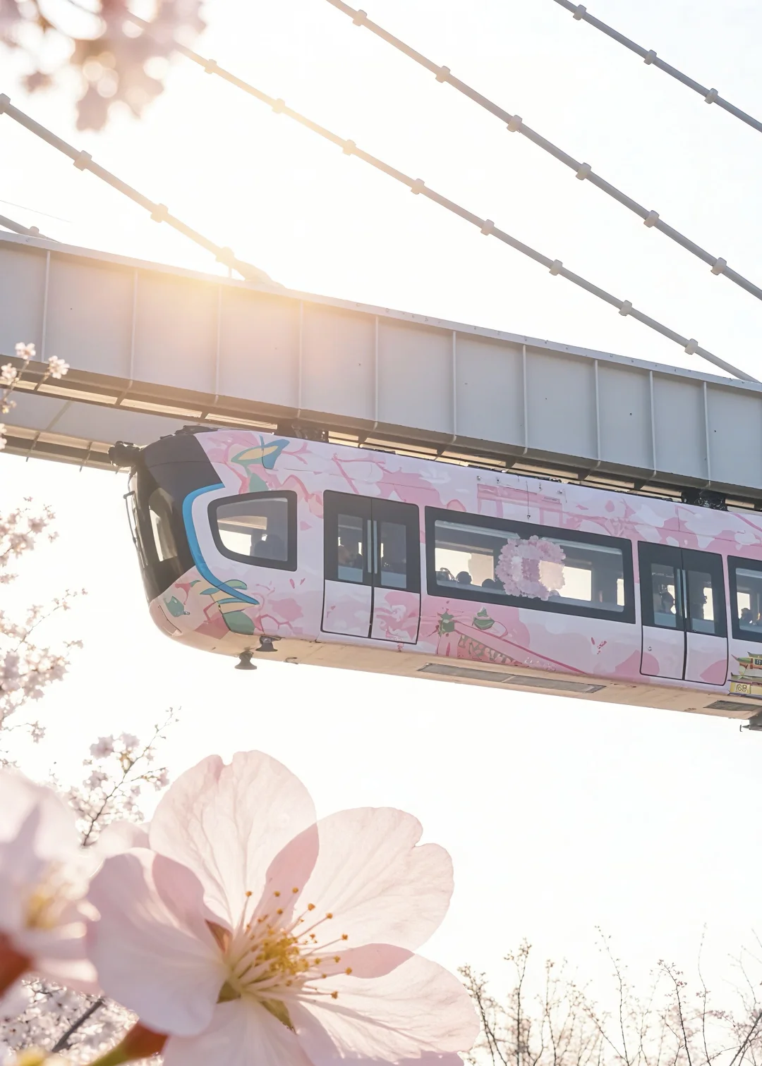 樱花+空轨同框的浪漫天花板