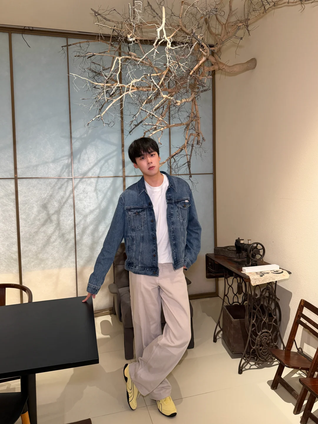 慵懒午后,浅紫色内衣搭配米色外套,舒适自在。