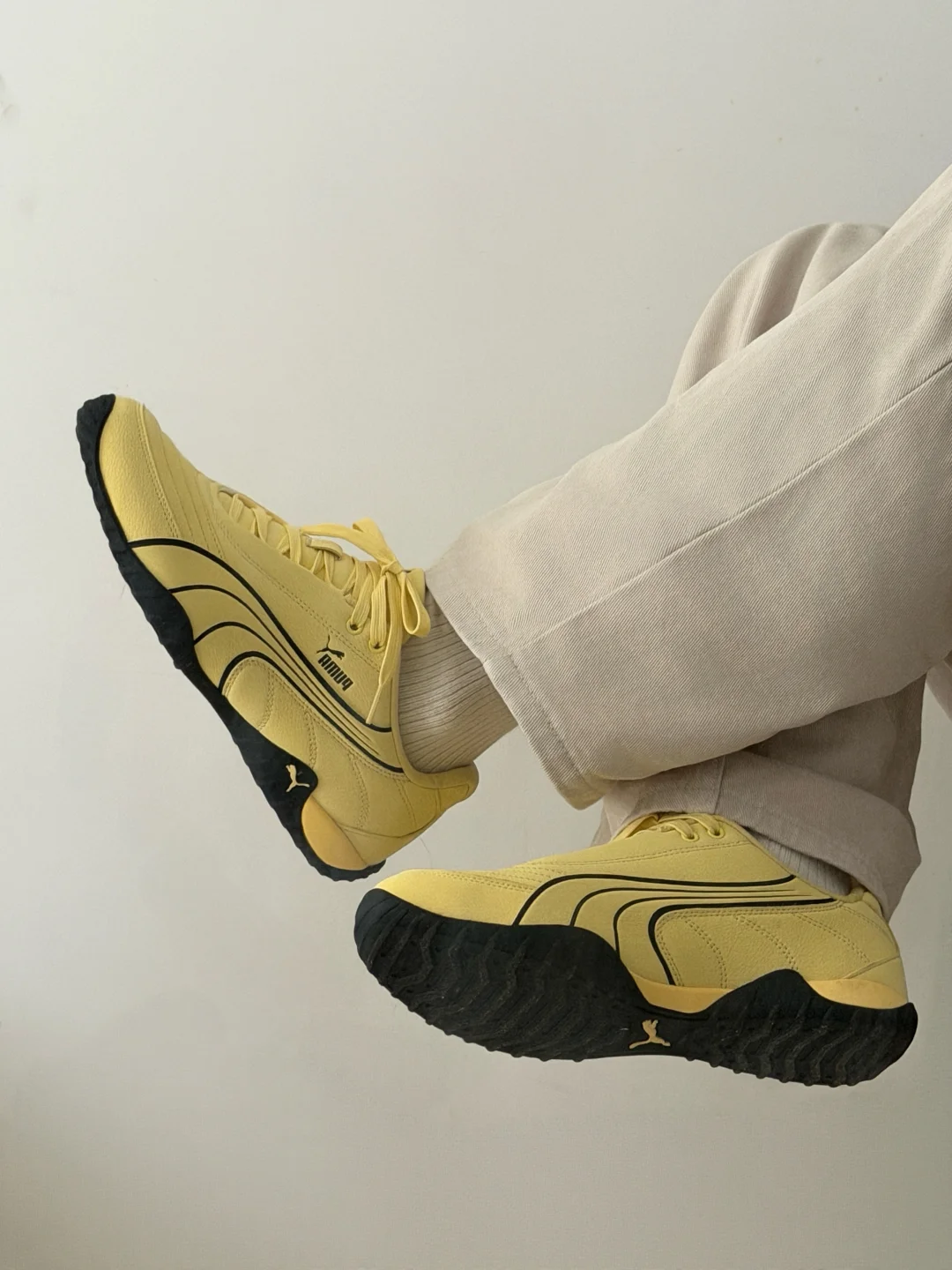 今日份韩系男友上线 - 这双PUMA NOVACAT新配色太会啦 奶油黄荔枝皮软软糯糯 弧线鞋身自带复古滤镜 - 上脚毫无压力 薄底设计走路带风 出门氛围感就靠它了
