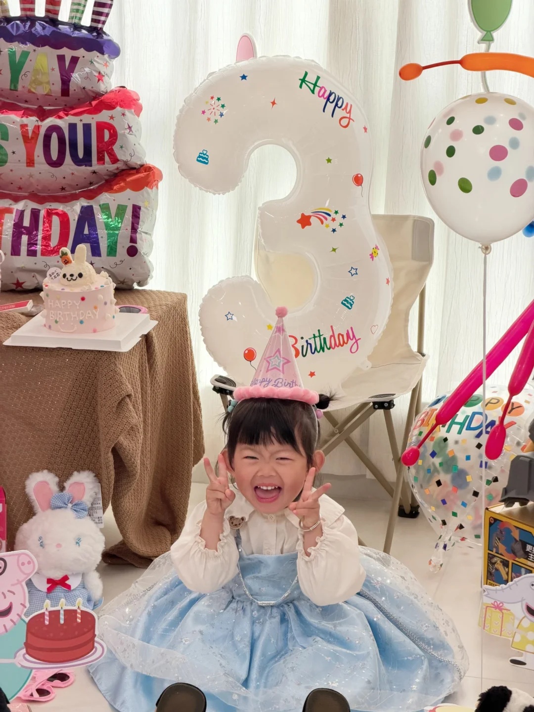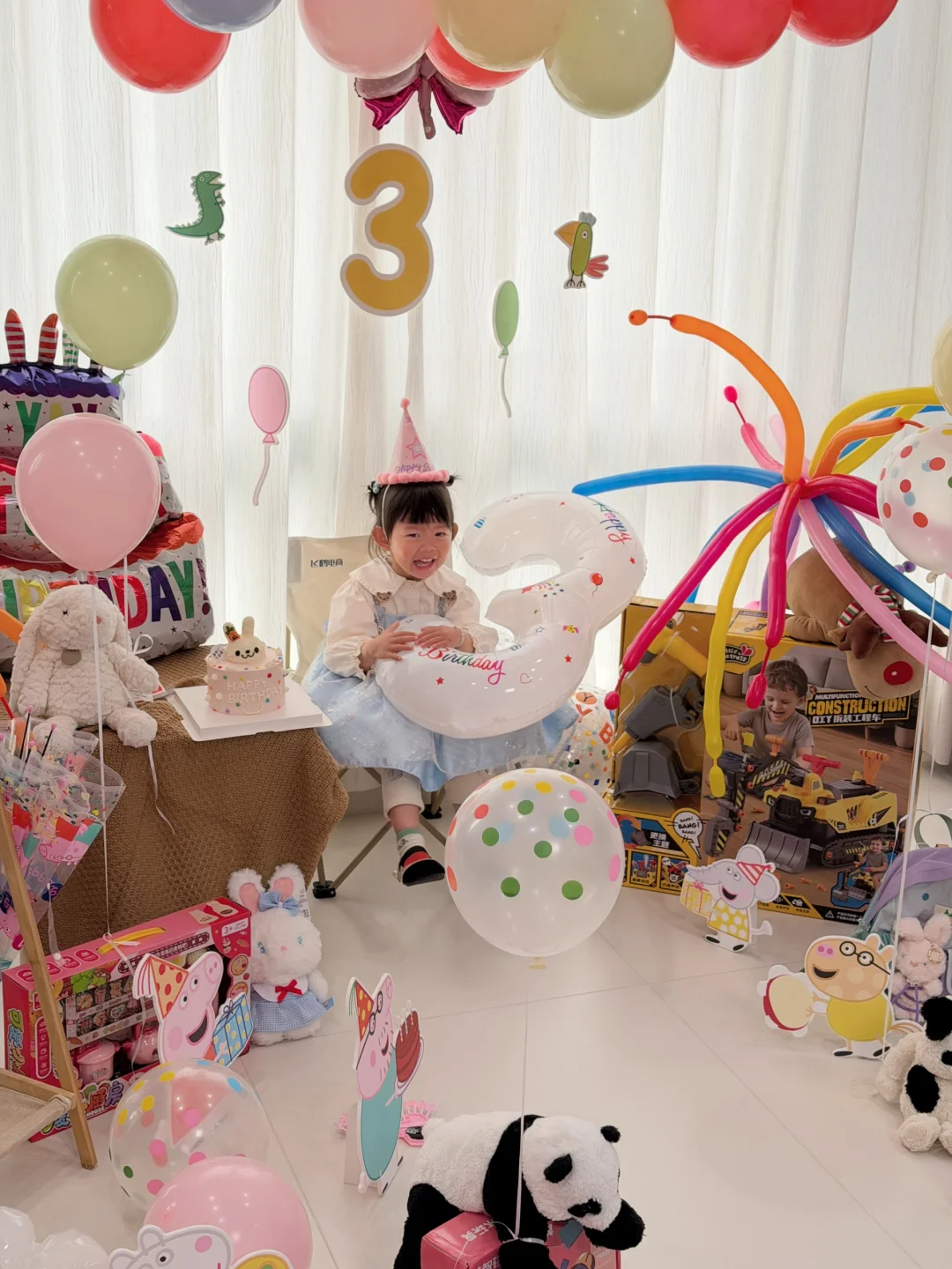 今天过三周岁的生日啦! 前段时间就一直吵着要小猪佩奇来给她过生日 直接买了立牌,买了气球和礼物🎁 提前一天先把别的东西都布置好,氮气球就🎈一早起来打 低成本布置,而且非常的出片很好看 - 剩下就买一些小朋友喜欢的玩具 还有一个蛋糕 非常有仪式感的三周岁生日就过好啦!