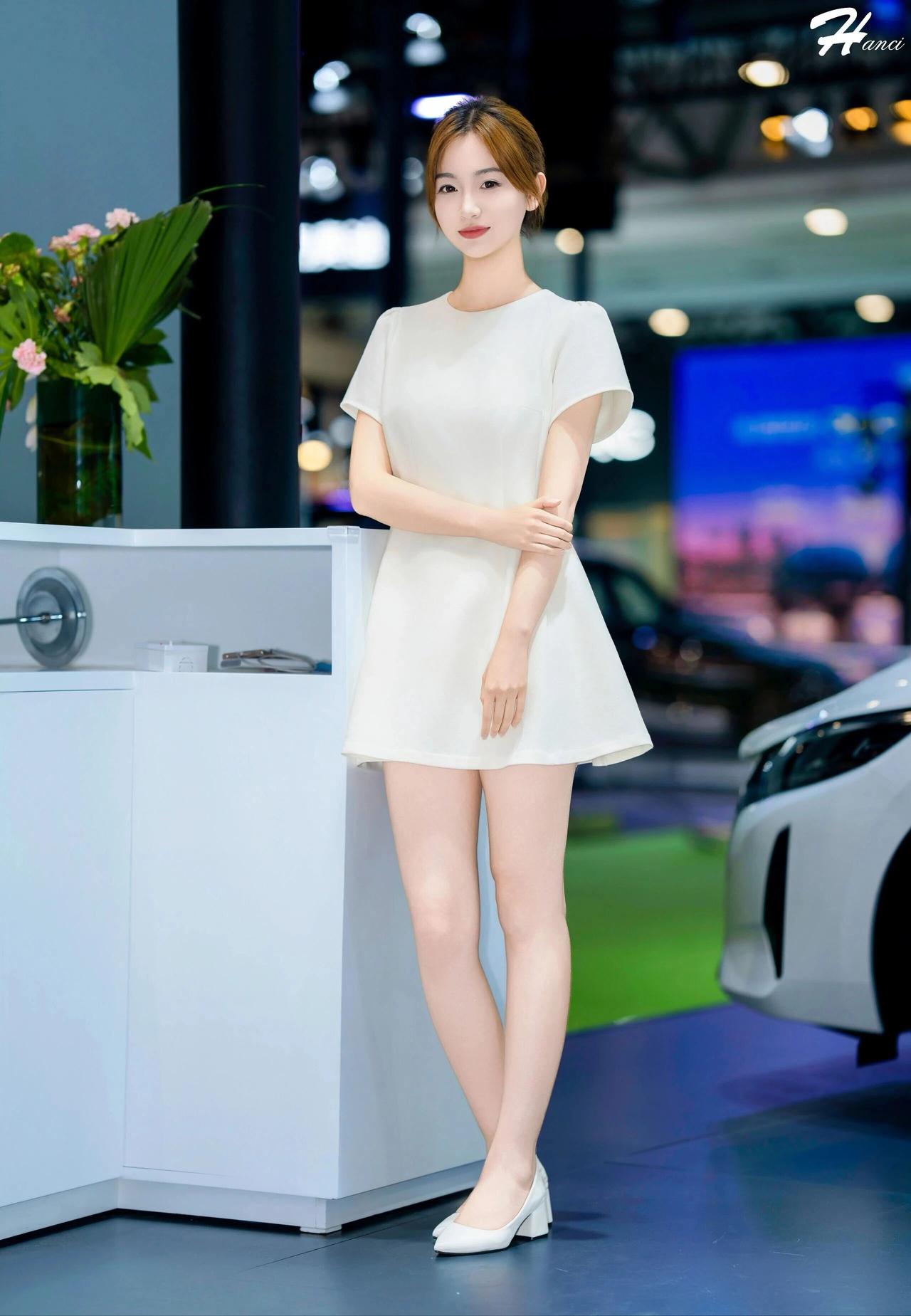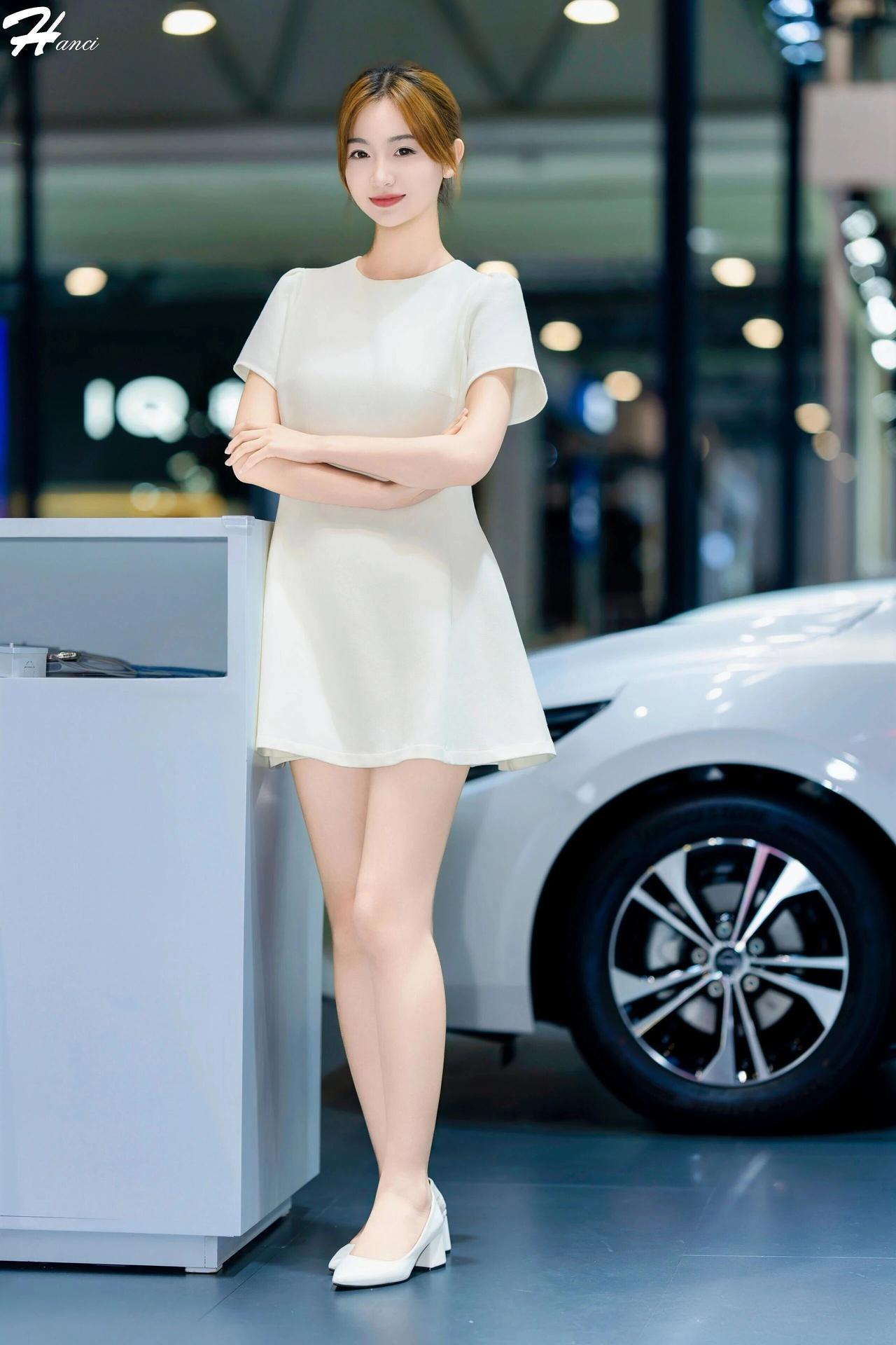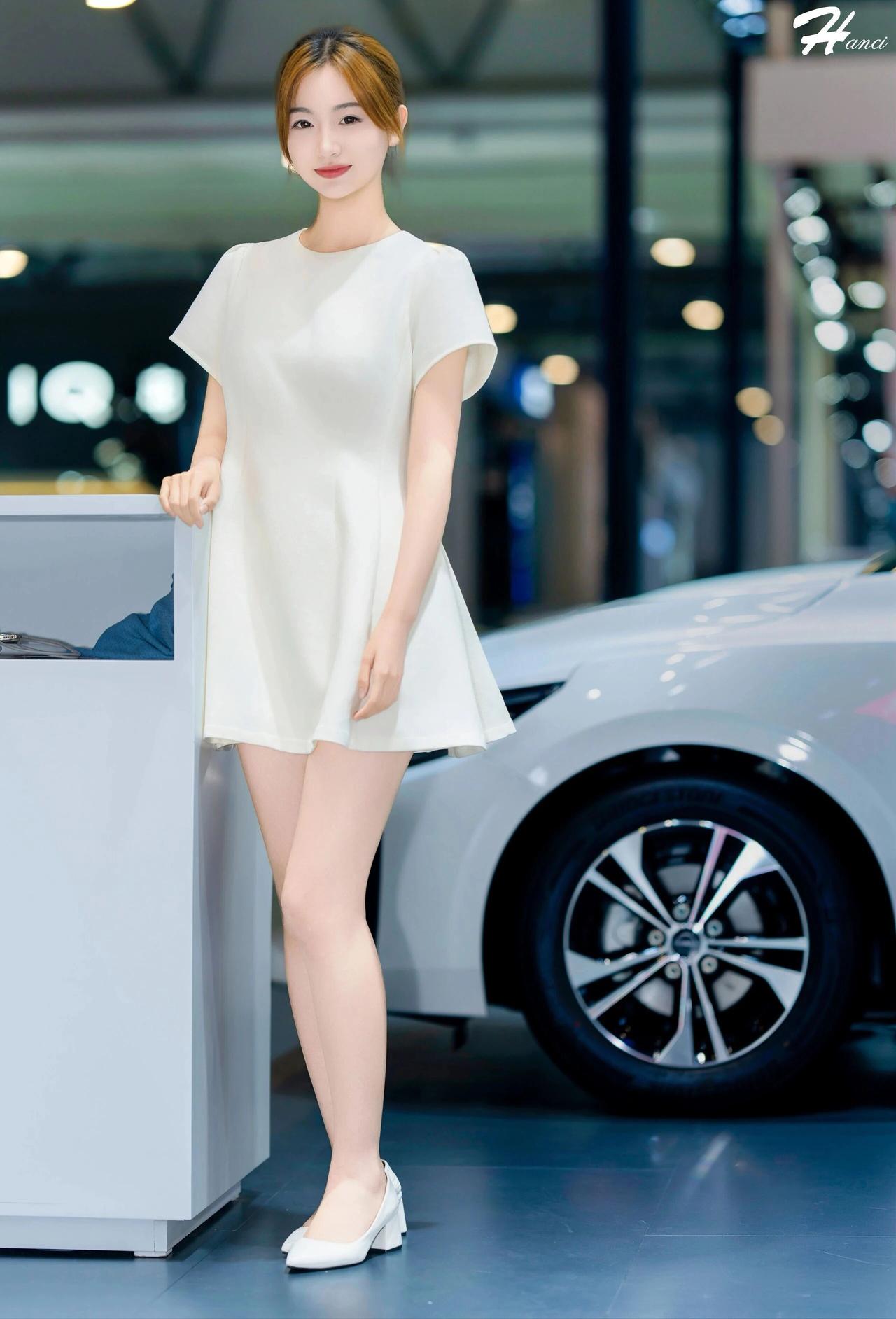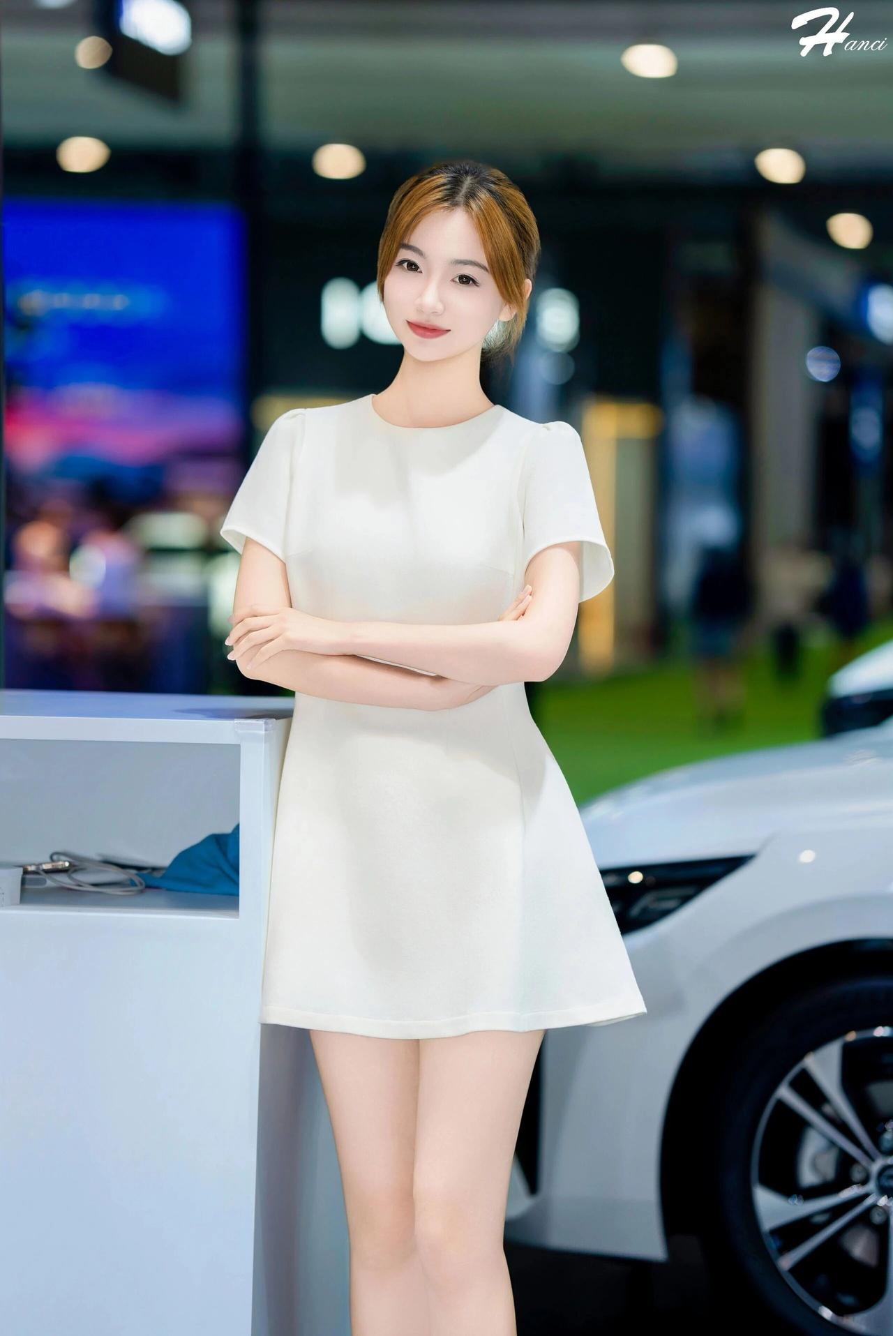 什么样的穿搭可以成为气质女神?这位女子身着一袭简约米白连衣裙,利落剪裁勾勒出挺拔身姿,裙摆轻盈雅致,搭配同色系浅口鞋,干净又高级。 她面容清秀温婉,眉眼澄澈柔和,唇色淡雅,神情从容恬静,气质端庄大方。身姿修长挺拔,双腿纤细白皙,静立车展展台间,自带清冷优雅的气场,素衣清颜更显脱俗,一颦一笑都温婉动人,落落大方。