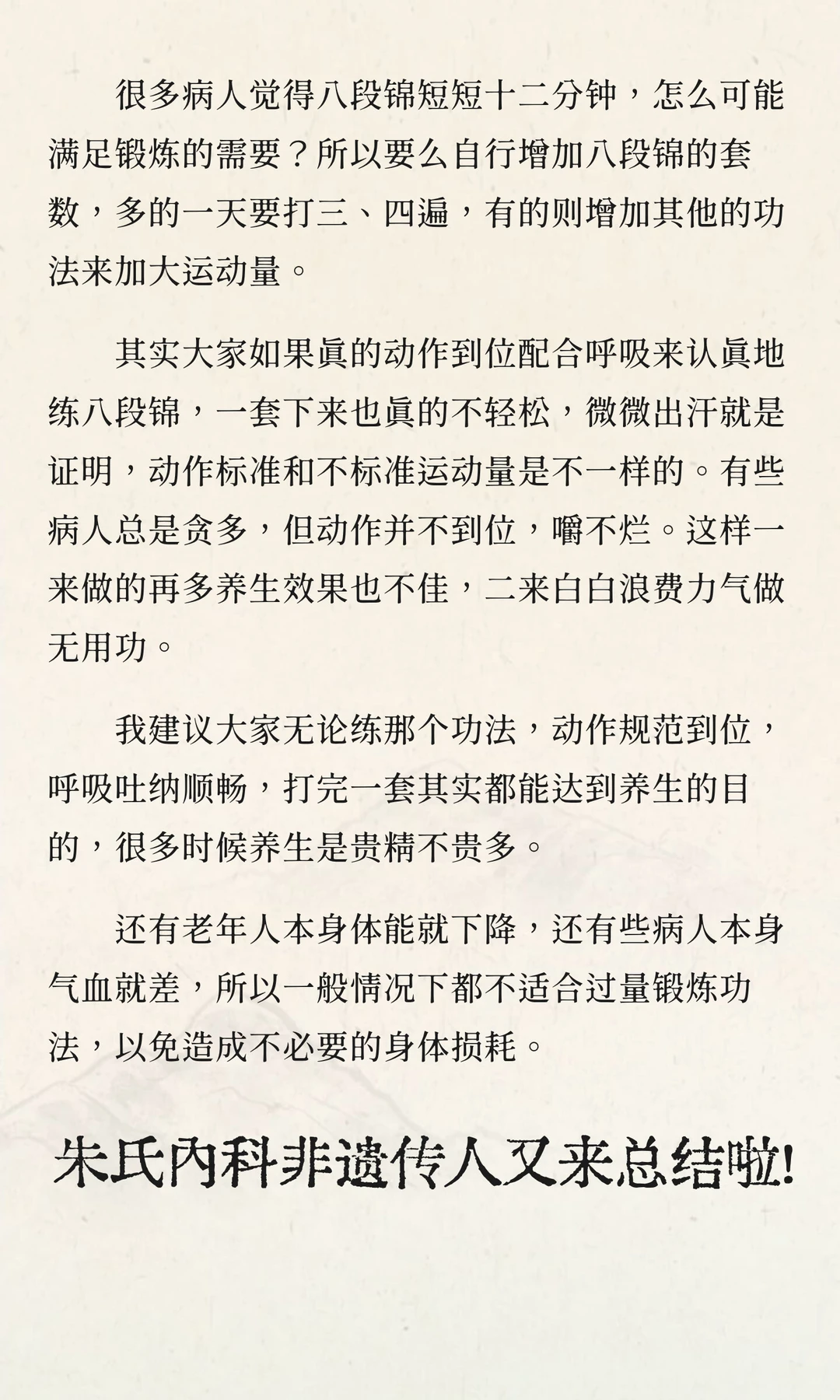 八段锦、太极拳之类的功法虽好,但过量练也是不行的。