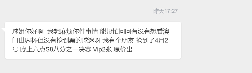 【中转小喇叭】球迷朋友求助,世界杯票原价转让4月2号 晚上六点S8八分之一决赛 Vip2张 原价出2张都原价出tips:请注意走平台哦