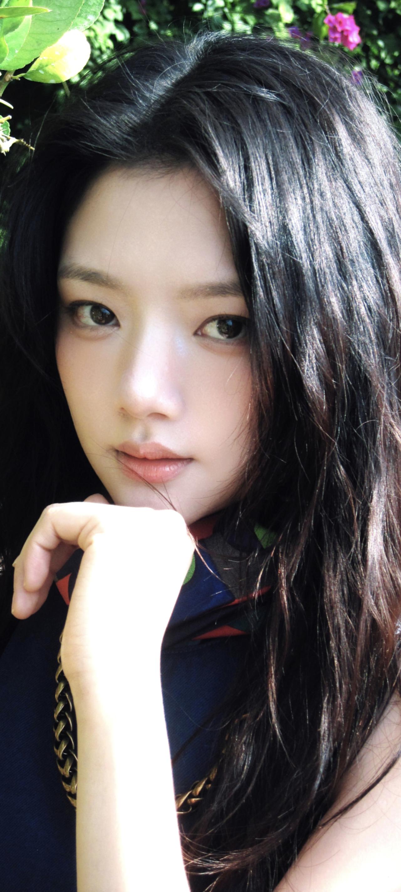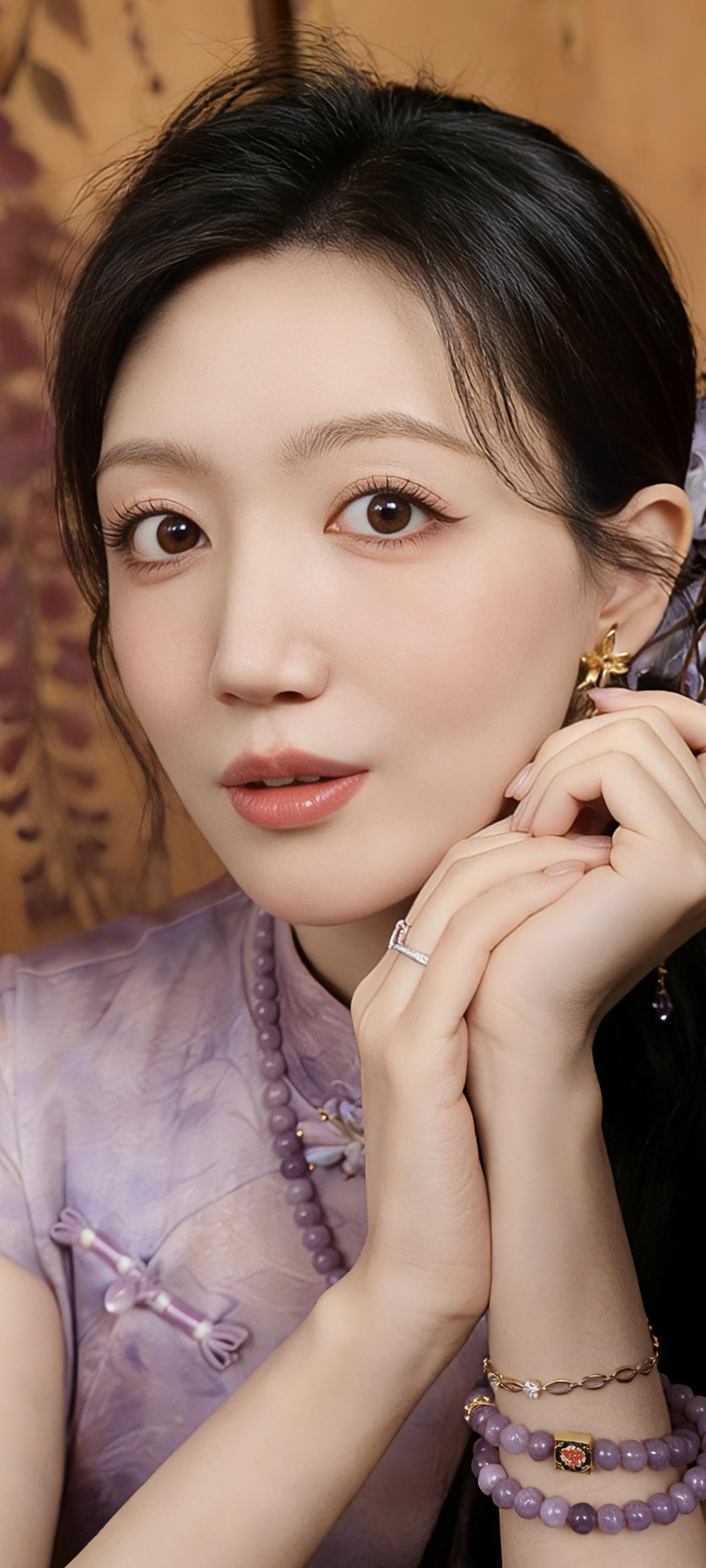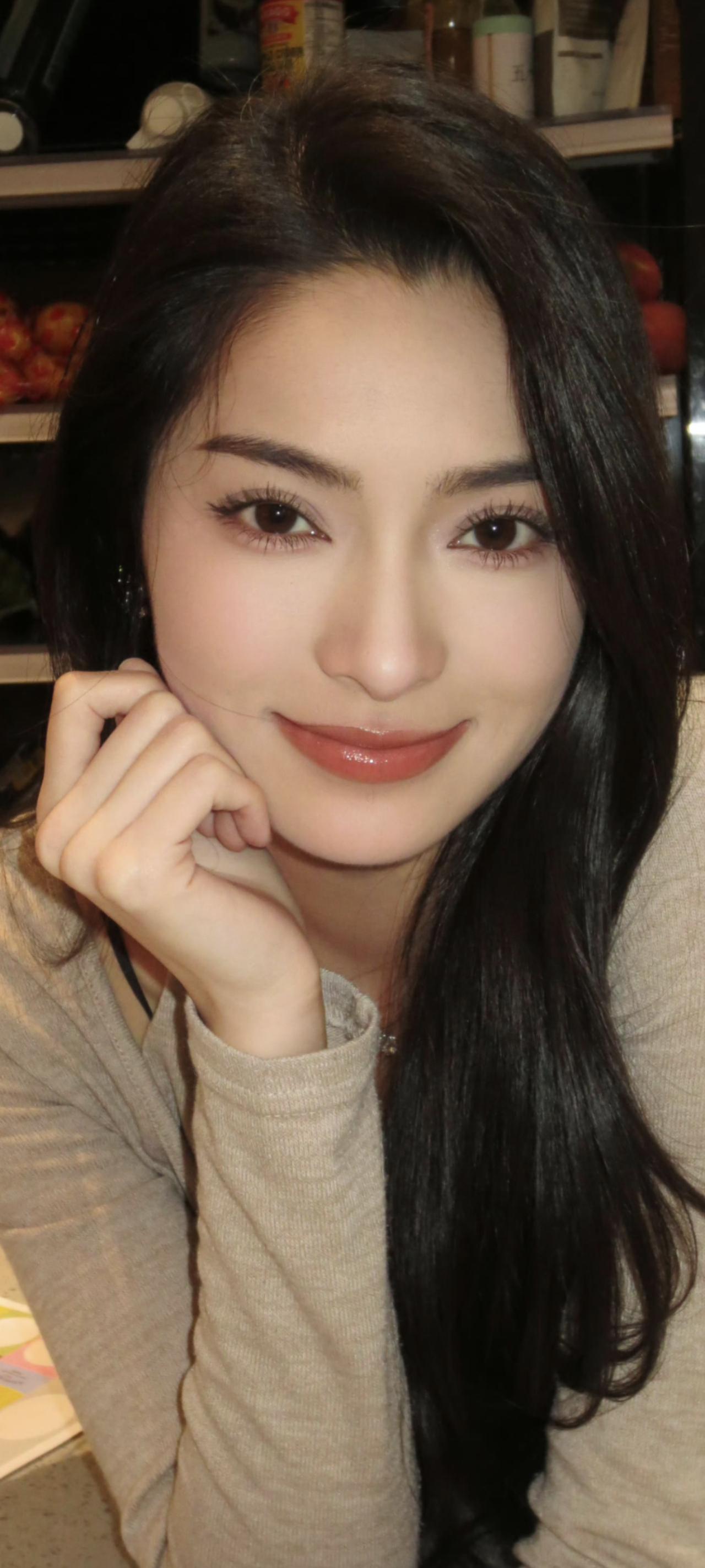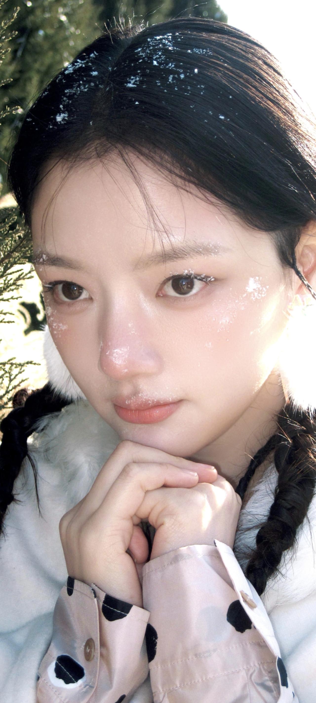 长发如丝覆玉肩,轻衫浅灰映窗前。回身一笑春风起,醉了流年醉了天。情脉脉,意绵