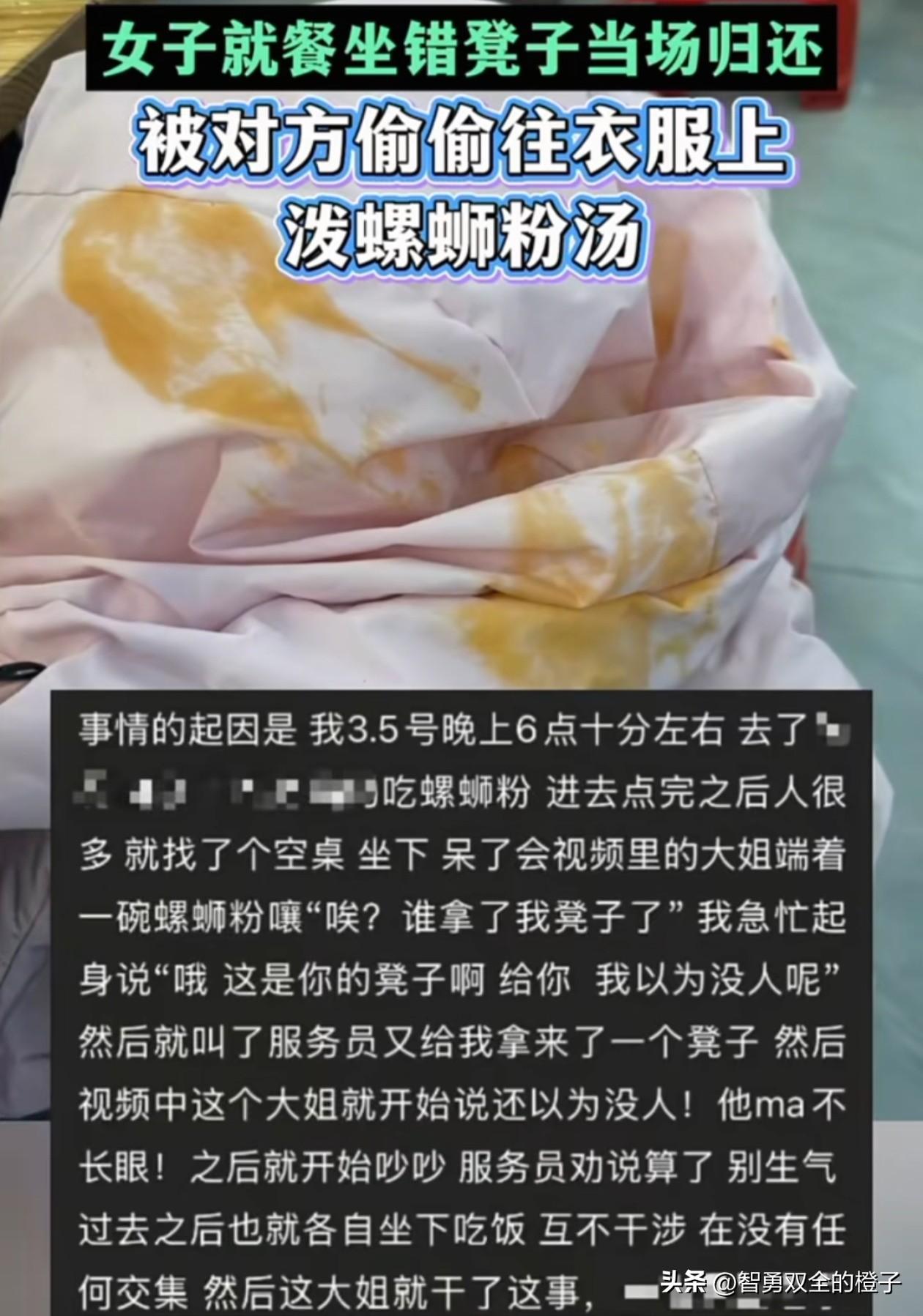 被泼螺蛳粉汤的女孩已经报警,建议黑衣女子立即做3件事,还有挽回的余地! 第1、主动联系女孩道歉。网上全是你高清的照片,一对比很快就能找到的,趁叔叔没找上门前,真诚道歉,一直躲着不是办法。 第2、全额赔偿女孩的损失。一件羽绒服应该也不贵,一般几百块,最多也就1000块钱,要么照价赔偿,要么直接给人家买件新的,别因小失大。 第3、主动向叔叔说明情况。你的行为已经涉嫌寻衅滋事,女孩又不私了,还不主动去承认错误,态度好点,不然到时候有你后悔的。 大家觉得呢?