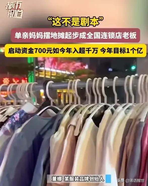 河南一位90后的单亲妈妈董娜,人生经历特别励志,2012年她手里只有700块钱,从摆地摊卖衣服开始一点点打拼。创业最辛苦的时候每天只睡三四个小时,凌晨五点就骑车去市场进货,靠着坚持和努力慢慢做起了新中式服装生意。如今一年的营收已经达到千万,从一无所有的地摊小贩,成长为事业有成的创业者,真正靠自己活出了精彩。