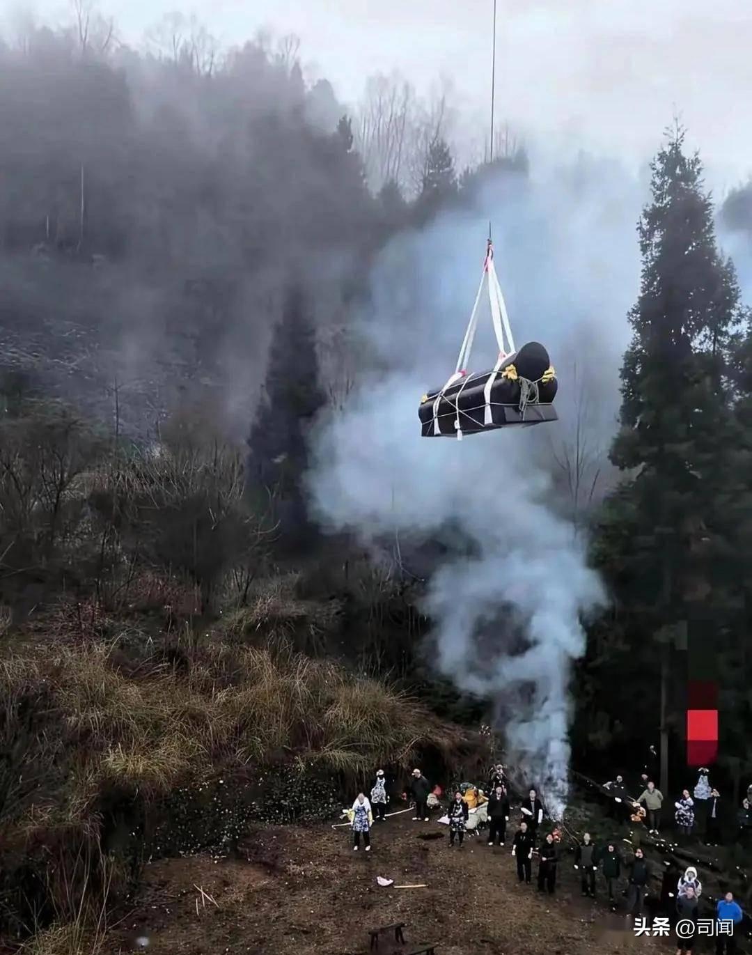 贵州一农户家庭老人离世土葬! 租无人机运934斤棺材上山! 办白事的主家表示:因为最近接连下雨,还是山路,村里人员人手不够,棺材有934斤(近半吨),正常需要16–30名青壮年抬棺。最开始刚起步的时候就2人滑倒、竹杠断裂,棺木落地是当地大忌,风险太高了,所以决定用无人机…… 据悉当天山间大雾,村民们都十分好奇,又持着怀疑态度,在大伙的注视下,无人机直接升空2分17秒起吊,全程平稳,中途因镜头起雾短暂重飞,总耗时约2小时,棺材安全送达山顶墓穴! 真是升“棺”发财啊!人手不足、传统抬棺风险太大,用重载无人机送逝者最后一程,不是对习俗的轻慢,反而是最体面、最负责的安排。 科技没有取代敬畏,只是换了一种方式……