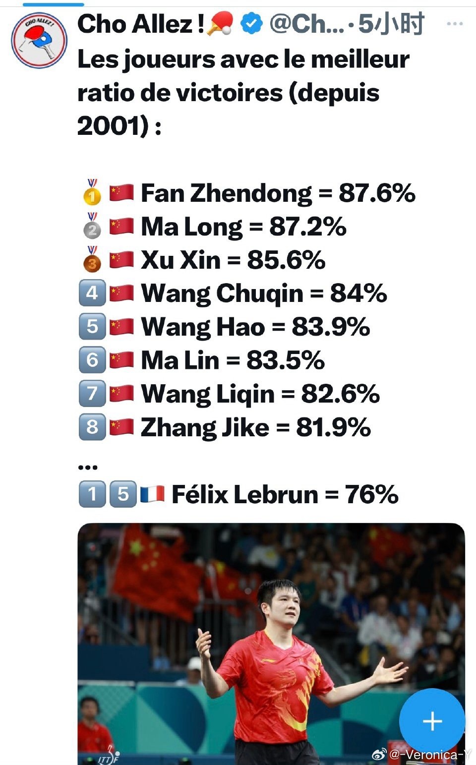 21世纪乒乓球运动胜率最高的男运动员——樊振东🇨🇳87.6%