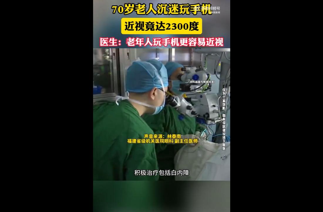 山东菏泽一位 70 岁老人,本就患有白内障和高度近视,却因长期沉迷刷手机,从早到晚不间断用眼,甚至熬夜观看,导致近视度数飙升至 2300 度。 医生提醒,老年人眼部功能退化,长期近距离用眼极易加重近视,引发难以逆转的视网膜病变,需科学用眼、定期检查。 70 岁高龄,近视高达 2300 度,如此触目惊心的数字,不是天生眼疾,而是被无节制刷手机一步步毁掉的。 本应安享晚年、爱护身体,却日夜沉迷方寸屏幕,把眼睛彻底透支,这不仅是个人悲剧,更是无数家庭的真实写照。 老人本就视力不佳、患有白内障,却没有规范治疗,反而从睁眼到深夜都抱着手机不放。 长时间近距离用眼、侧躺刷视频,让本就脆弱的双眼不堪重负,最终酿成高度近视的严重后果。 2300 度,几乎接近失明边缘,晚年生活质量大打折扣,令人痛心。 很多老年人缺乏健康用眼意识,把刷手机当作唯一消遣,却不知眼部调节能力早已衰退,经不起长期消耗。 高度近视引发的视网膜病变、眼底损伤一旦形成,便难以逆转,轻则视物模糊,重则失明,给自身和家人带来沉重负担。 爱护眼睛,不分年龄;科学用眼,刻不容缓。别让手机,偷走晚年的光明。