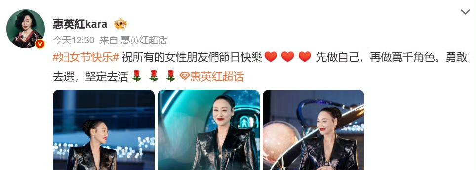 3月8日妇女节,有位粉丝在惠英红评论区留言“女神节快乐”,没想到惠英红直接回复纠正:“是妇女节快乐。”,不得不说,惠英红纠正得挺对。 在她看来,“妇女”二字承载着平等与奋斗的历史意义,无关美化,无关标签,这些年,“女神节”“女王节”被商业包装得花里胡哨,反而模糊了节日本来的样子,惠英红这一纠偏,确实让人清醒,妇女节不是为了听漂亮话,而是为了记住那些为女性权利争取过的先辈。 网友纷纷点赞:“姐太刚了!”“这才是真正尊重女性。”,确实,与其当一天虚头巴脑的“女神”,不如理直气壮地过好“妇女节”,惠英红说得在理,拒绝商业稀释,回归节日本质,这才是该有的态度。 惠英红这一纠偏,真的让人佩服,有些事,不能为了好听就改了口。