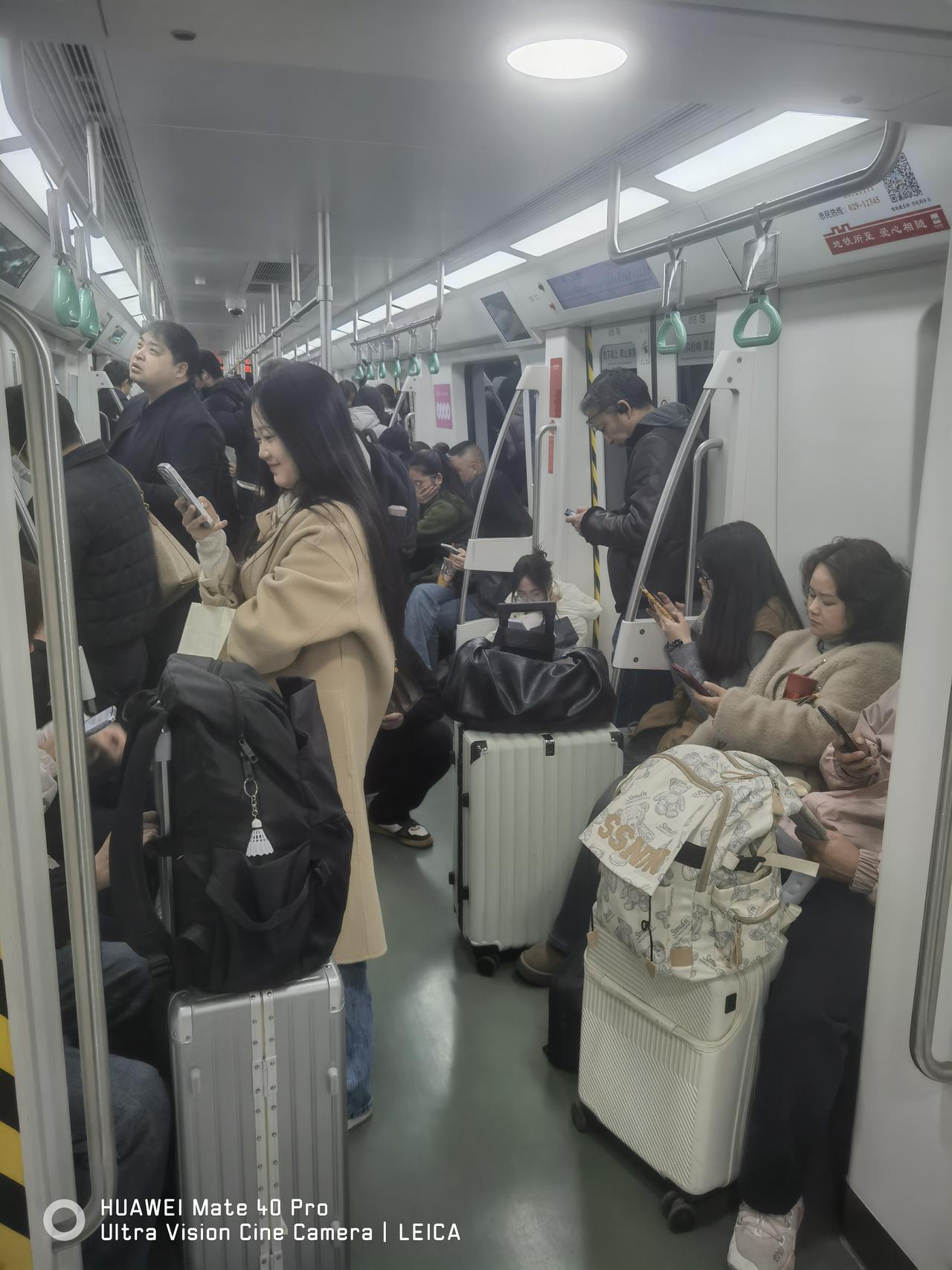 正月二十日,又进入大学生开学季,行李箱在西安地铁四号线随处可见,客流量爆满,祝福