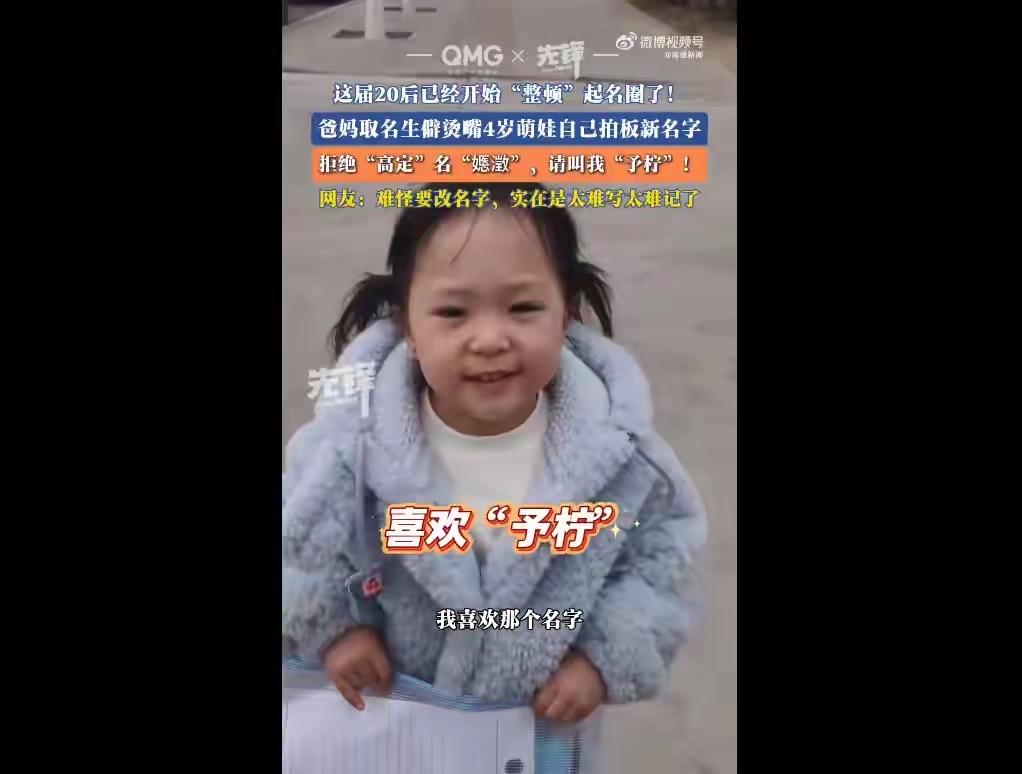 太真实!河北张家口4岁萌娃郭嫕澂,因父母为求重名少取了这俩生僻字,旁人全不认识、孩子上学书写也难,爸妈便张罗改名。挑好备选名后尊重孩子想法,萌娃自己拍板改成郭予柠。本想的全国唯一“高定”名字,终究败给实用,取名还是得兼顾独特与好认好写呀!