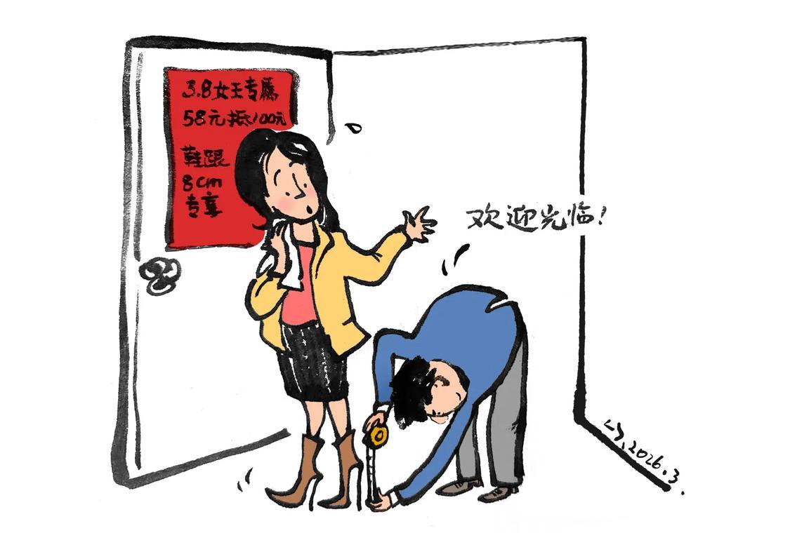 火锅店鞋跟打折事件:别用“女王”包装,行“审视”之实 活久见!某火锅加盟店借3·8“女王月”搞事:女顾客鞋跟越高,折扣越大,现场量鞋跟像给商品标等级,荒诞又刺眼。 最讽刺的是,商家把“物化”包装成“宠粉”,把“审视”伪装成“福利”——仿佛女性的价值,全藏在鞋跟的厘米数里。穿平底鞋是“不配优惠”,踩恨天高才是“合格女客”,这哪里是致敬女王,分明是把女性当成行走的营销道具,用“美丽刑具”换折扣,把妇女节过成了“被评判日”。 更双标的是,从没见过商家量男性鞋码、身高打折,偏偏对着女性的鞋跟“精挑细选”。所谓的“女王福利”,不过是换个花样的性别凝视,用廉价折扣绑架女性的穿着自由,既冒犯又低俗。 总部一句“加盟店私自策划”就想甩锅?本质是陈旧营销思维作祟——以为拿女性外貌做文章就能博眼球,却忘了现在的女性,不吃“被审视”那一套。 真正的宠粉,从不是丈量鞋跟,而是尊重每一种选择;真正的女王节,不该有“鞋跟焦虑”,只该有平等与体面。别让一场低俗营销,毁了节日的意义,也砸了自己的招牌。