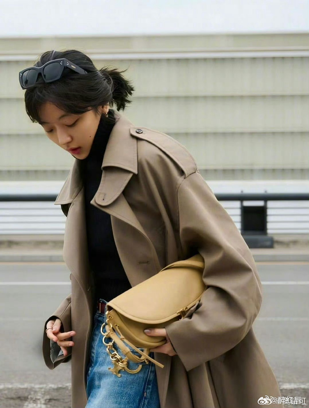 刘亦菲这条裤子挺养生,毕竟降温了肚脐眼必须护住啊