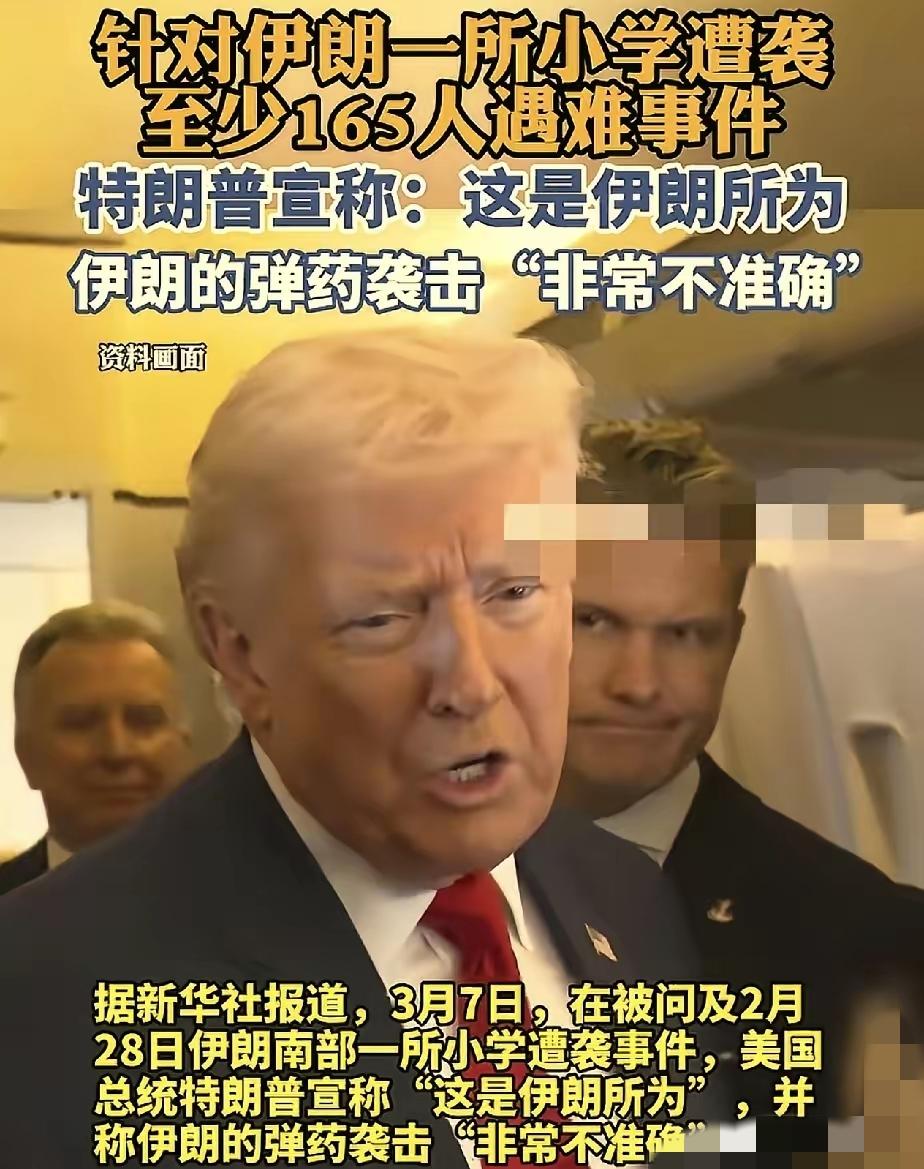 这锅甩的真快! 3月7日面对记者提问,特朗普直接把伊朗南部小学爆炸案的锅甩给了伊朗自己,这番操作真的让人看傻眼。 2月28日正是美军空袭伊朗的当天,伊朗这所小学遭遇袭击,165条鲜活的生命没了,大多还是天真无辜的孩子。这么大的悲剧,谁听了不心疼。 结果特朗普面对质疑,第一时间撇清美国,还说这是伊朗导弹不精准、自己炸偏了。明眼人都能看出来,这个说法根本站不住脚,美军的精准打击能力全世界都知道,怎么可能偏偏炸错学校? 为了摆脱责任,直接倒打一耙,把黑的说成白的,这种逻辑实在太离谱。无辜孩子的生命不该成为政治博弈的牺牲品,这样的解释不仅没人信服,反而更让人看清真相。 这么离谱的说法,你们觉得信吗?