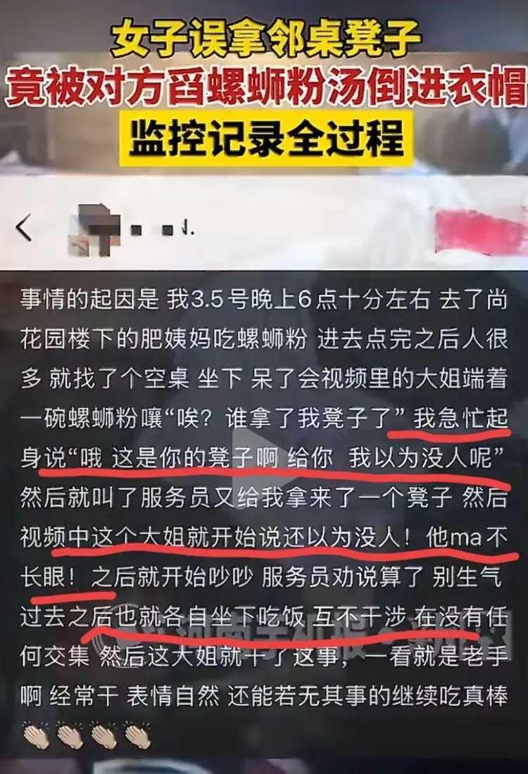 保定螺蛳粉店的这个往人身上泼油汤的女子,社死了。 无论是在街上,在食店里,还是在单位,甚至是邻里街坊,绝对不会还有人敢靠近她,敢和她说话。 相信她不是第一次作恶,只是以前做的恶没人曝光而已。 像这种人,大家都会防着她。