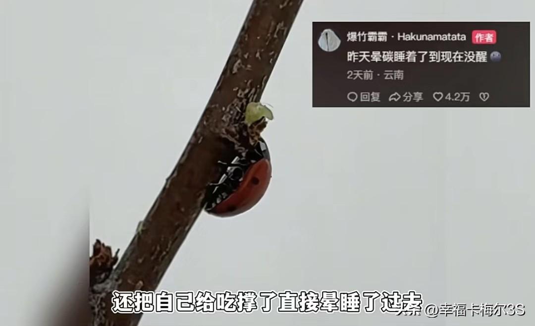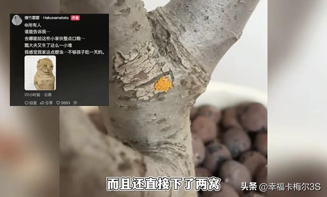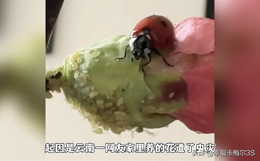 请瓢虫抓蚜虫,结果抓了个“孕妇”!网友:蚜虫没了,瓢虫一家子赖上了 云南一网友家里的花遭了蚜虫灾,密密麻麻的看着就头大。听人说七星瓢虫是蚜虫的天敌,他赶紧抓了一只回来“请”到家。 花大姐确实给力,一到家就追着蚜虫狂吃。可蚜虫太多了,花大姐吃着吃着把自己吃撑晕过去了。 就在网友发愁要不要再抓几只瓢虫来帮忙时,低头一看花大姐居然在他家下了两窝蛋!这下好了,蚜虫还没吃完,瓢虫家族先壮大了。 现在蚜虫是解决了,新问题又来了:这么多小瓢虫出生后,上哪找那么多蚜虫给它们吃啊!当初请花大姐的时候还承诺了管够伙食,现在得对它们一家老小负责到底了。 七星瓢虫幼体长得有点“磕碜”,一株花上爬二十多只,家里人看了都害怕,网友现在得先想办法让家人克服对瓢虫幼体的恐惧。 这事儿真是应了那句话:解决一个问题,又来一堆新问题,主打一个“按下葫芦浮起瓢”啊!