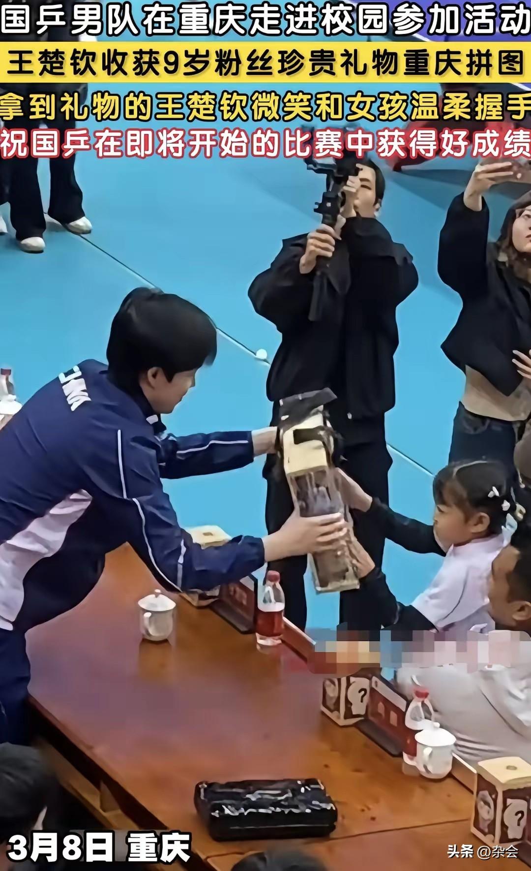 被头哥这一幕暖到了! 九岁的小粉丝被家人抱着送上重庆拼图,他立马站起来,笑着伸手握手。那个眼神,那个笑容,真的太温柔了。 原来赛场上那个霸气的小狮子,面对小朋友时心这么软。一看就很喜欢孩子,这治愈系的笑容,看得我心都要化了~